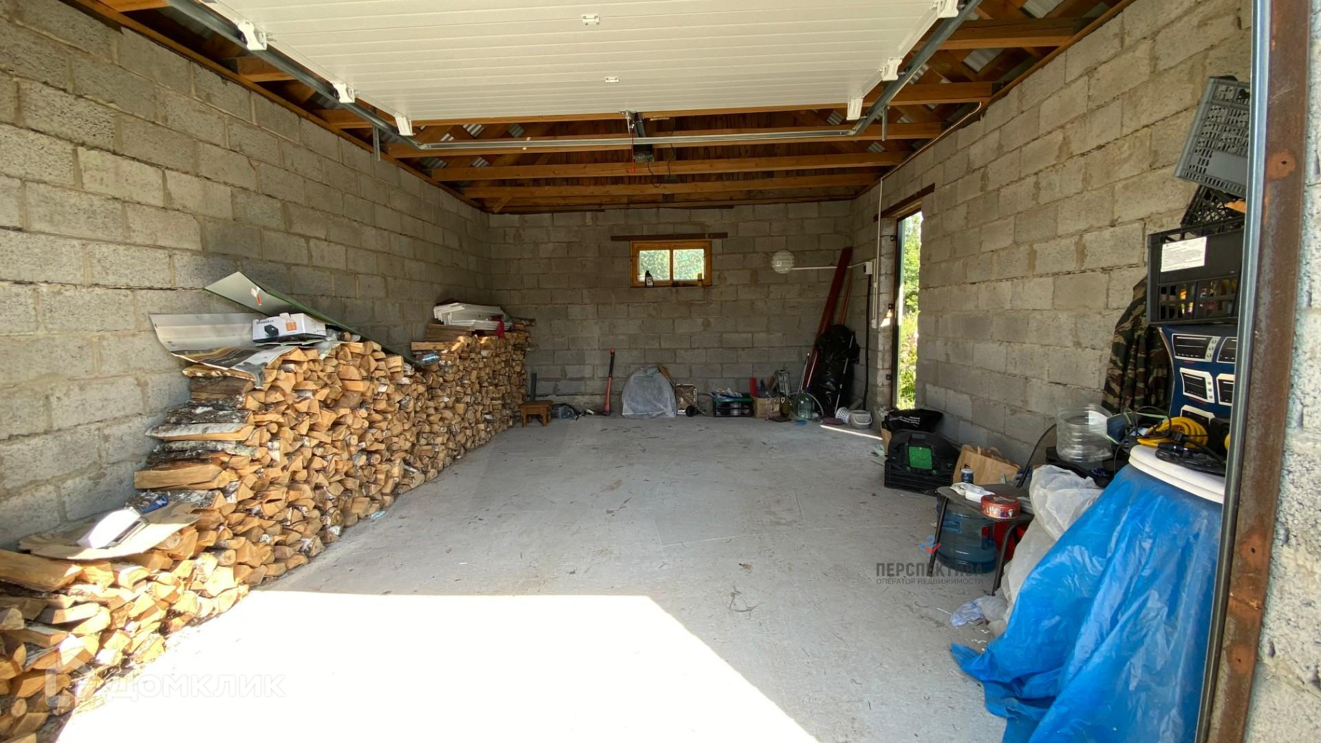- Построен из шлакоблочного кирпича, обшит сайдингом, металлическая входная дверь, автоматические подъемные ворота. Возможность организовать дополнительную зону для хранения.