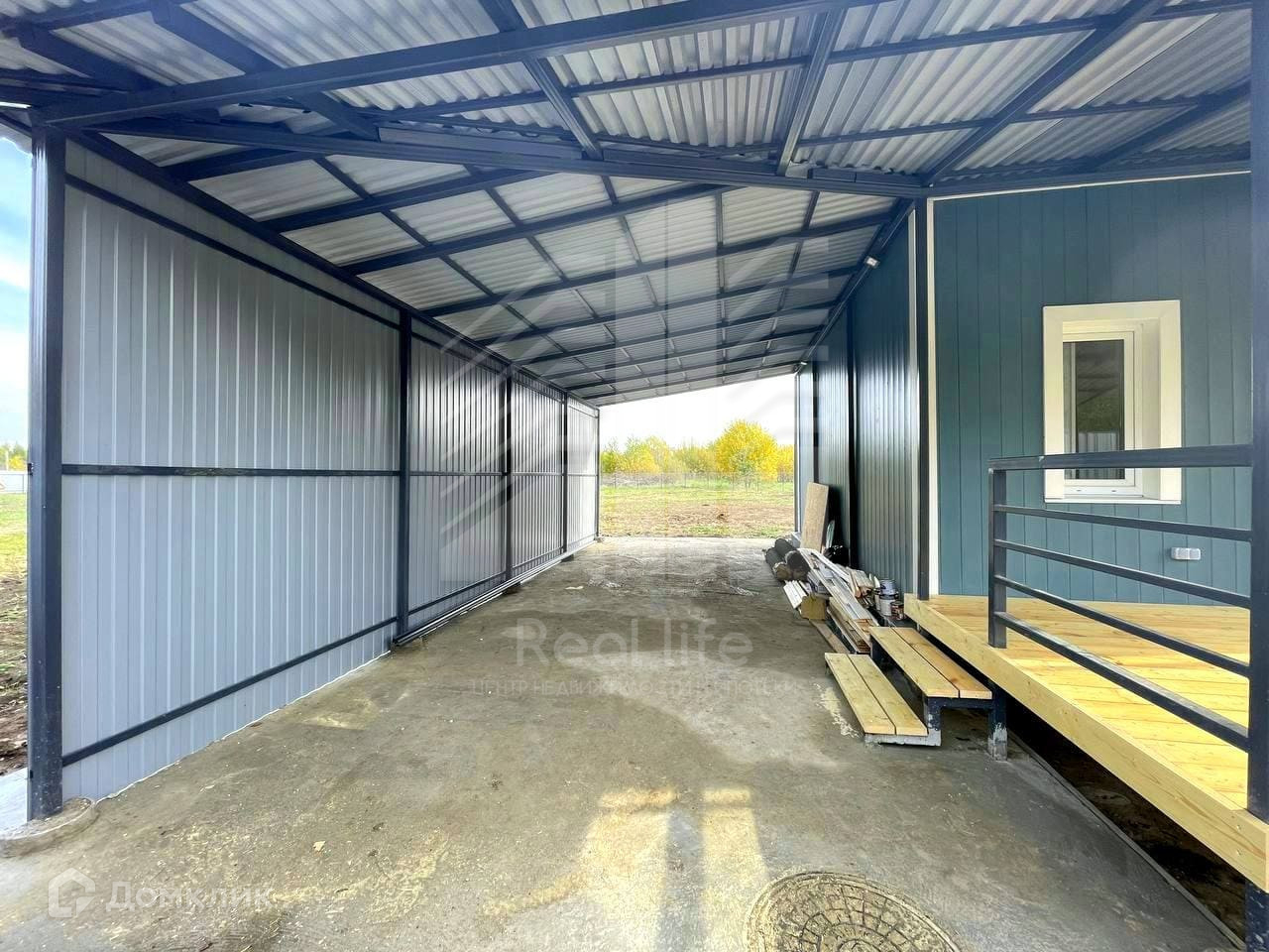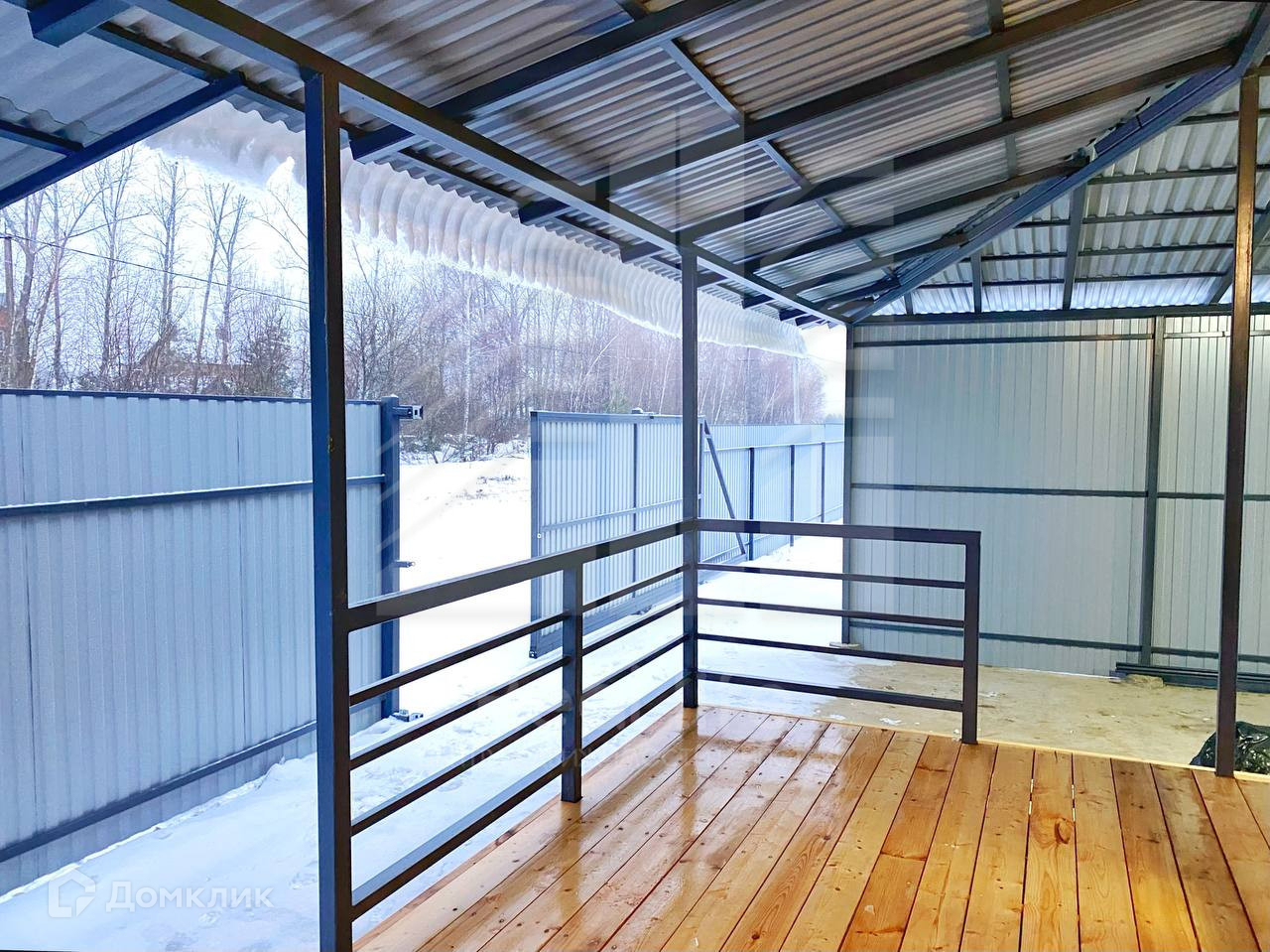 Участок 8 соток ИЖС, ровный, огорожен забором (профлист и рабица), предусмотрены автоматические ворота. Подготовлена бетонная площадка и навес на две машины.
