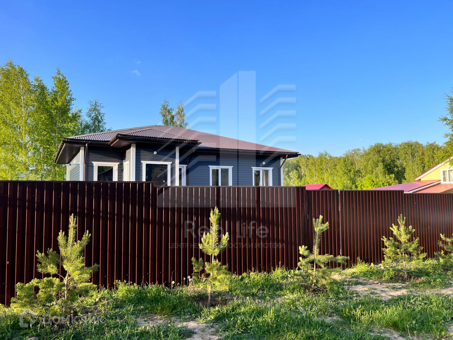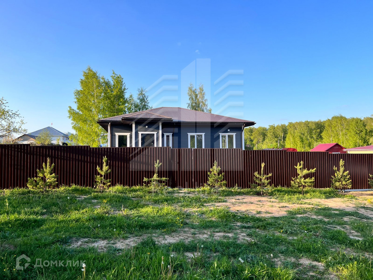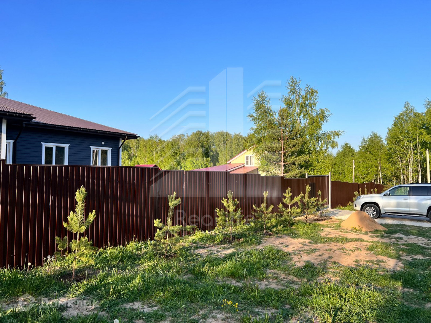 По фасаду забора в подарок покупателю посажено 15 сосен.