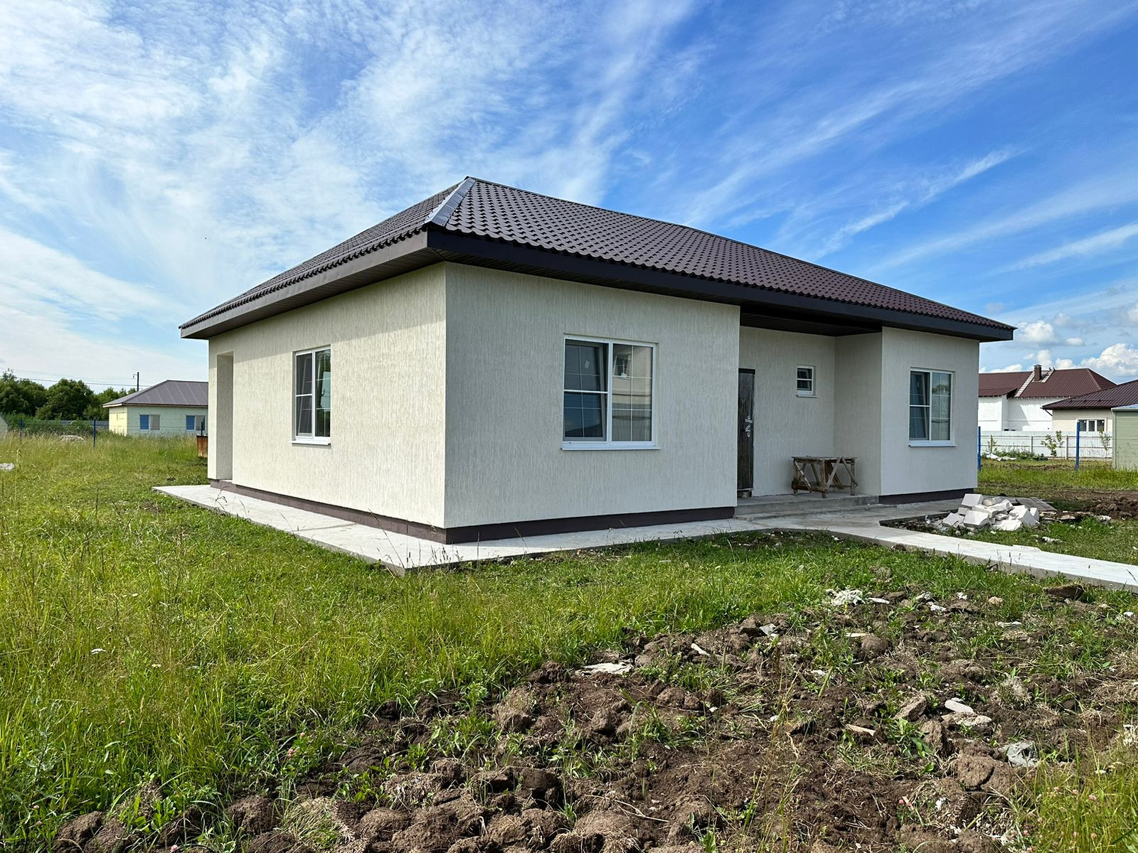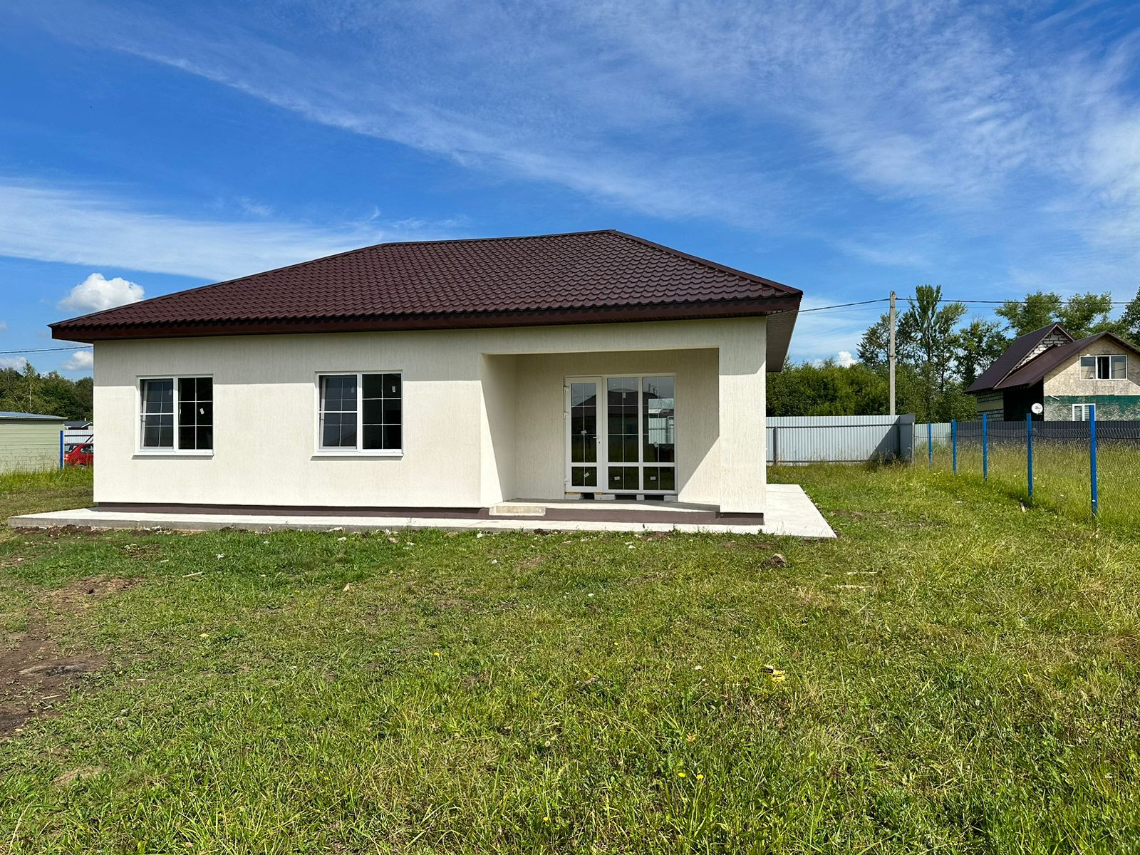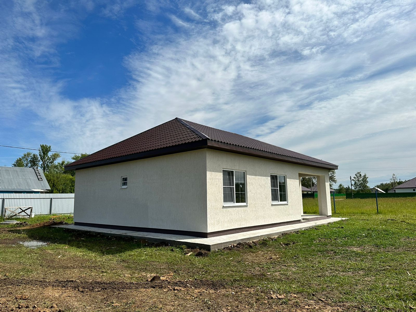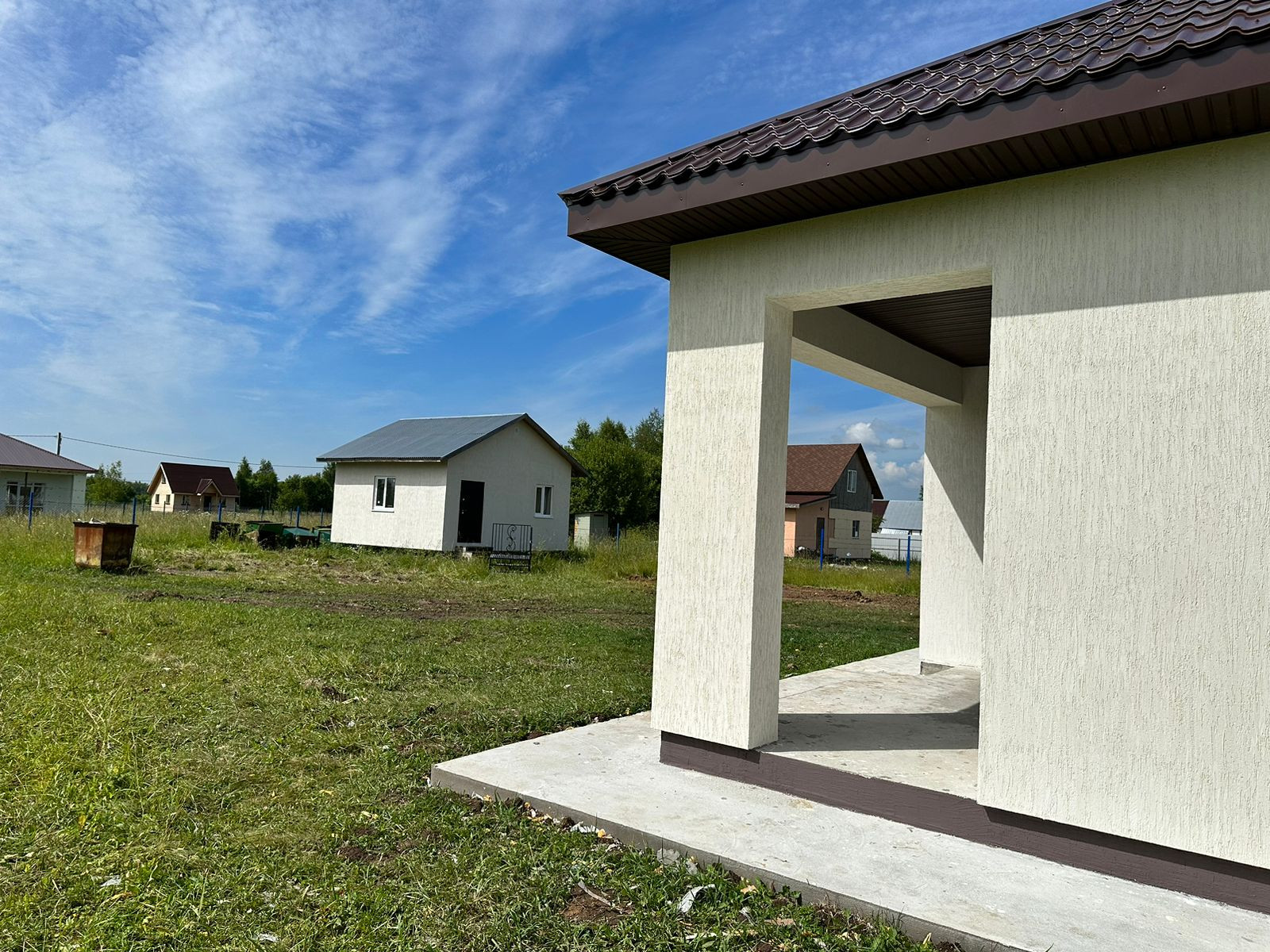 На данном участке 2 строения: Дом 118 м2 и маленький каркасный утепленный домик 36м2 так же фасад выполнен под декоративную штукатурку "Короед"(можно сделать баню или на усмотрение будущего собственника )конечную стоимость дома под ключ уточняйте по телефону,на данном этапе стоимость указана в объявлении .
