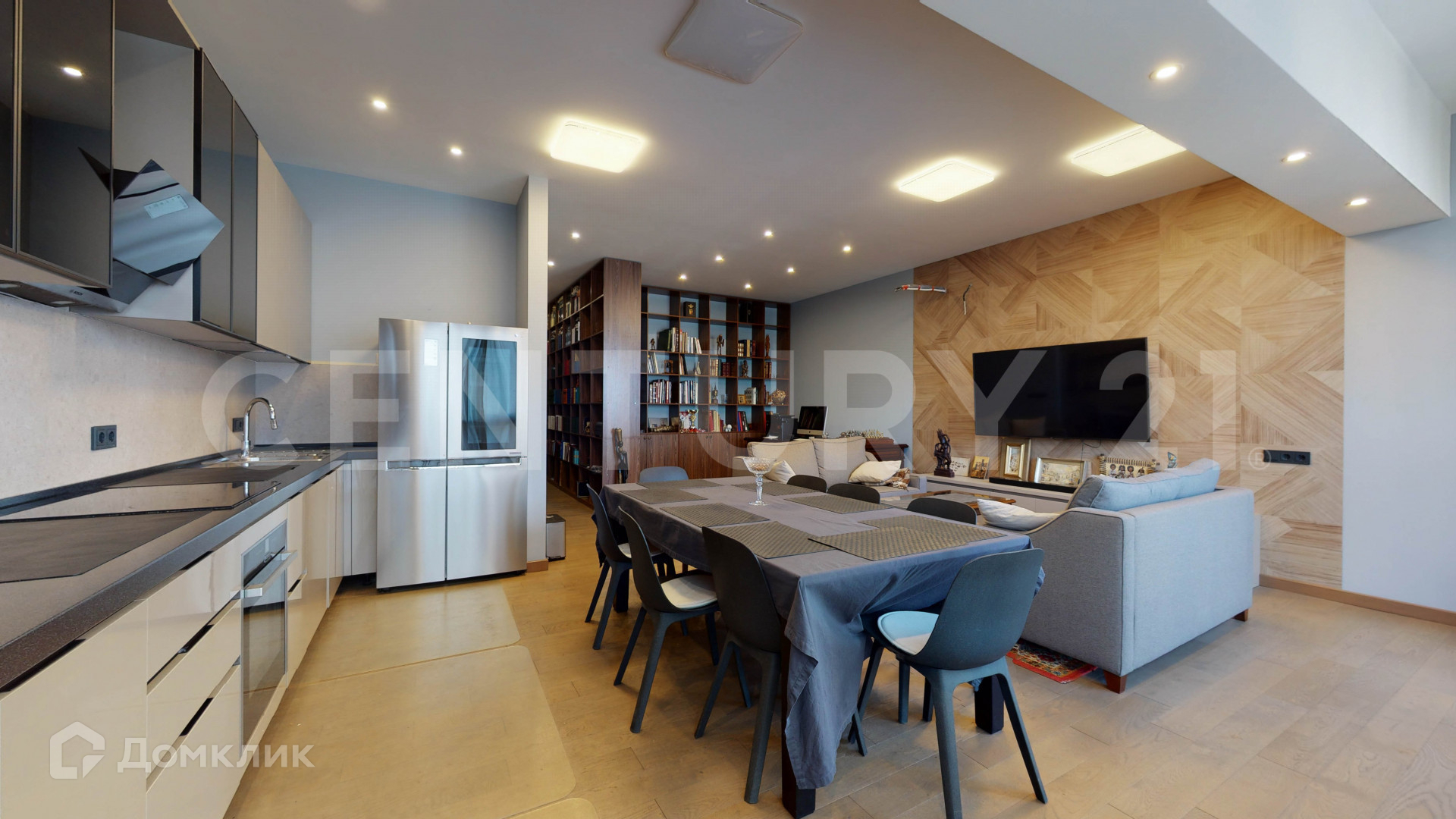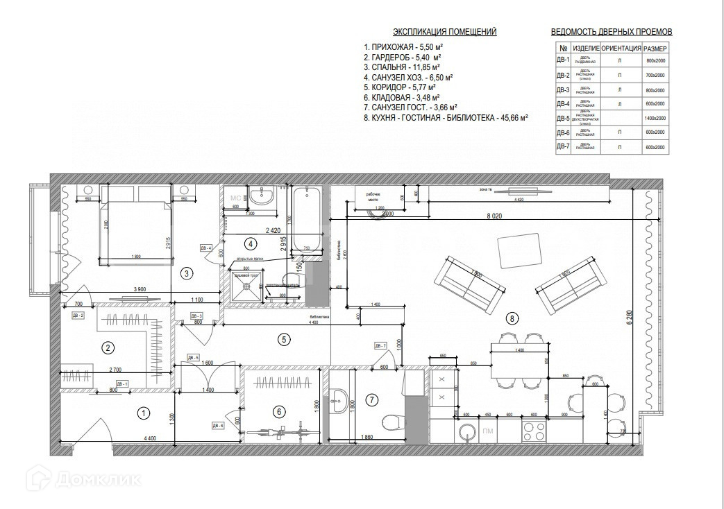 В планировку входят кухня совмещенная с гостиной 45 кв. м, гостевой санузел, мастер-спальня 15 кв. м. с собственной ванной комнатой и гардеробной.