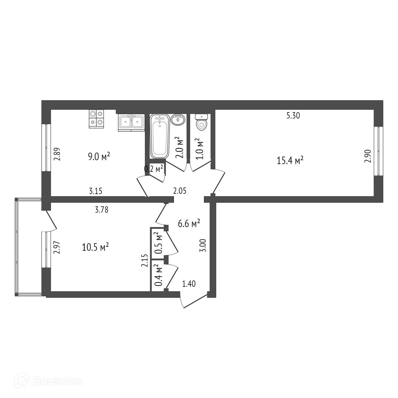 Общая площадь 45.8 м2
