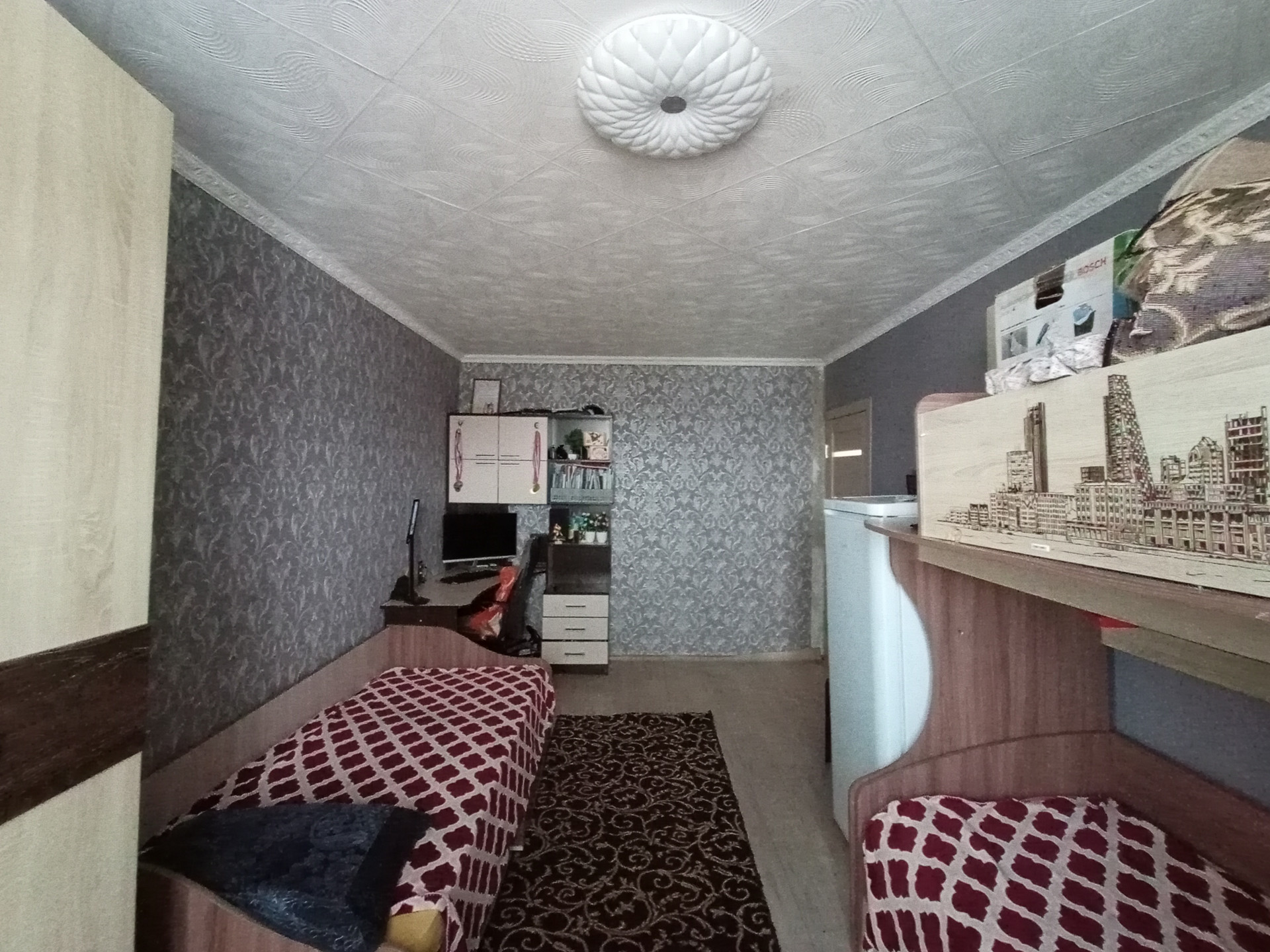 В квартире требуется косметический  ремонт:   монолитные   потолки.   Пластиковые стеклопакеты. Балкон с видом во двор. Покрытие пола линолеум.  Квартира тёплая. Двор очень уютный и тихий всегда поддерживается  порядок. Соседи  доброжелательные люди.