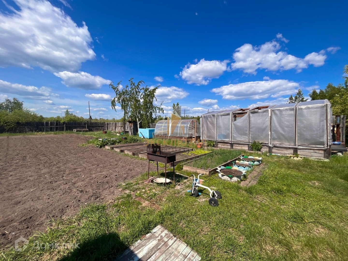 На участке есть: гряды, картоф. поле, теплица поликарбонат