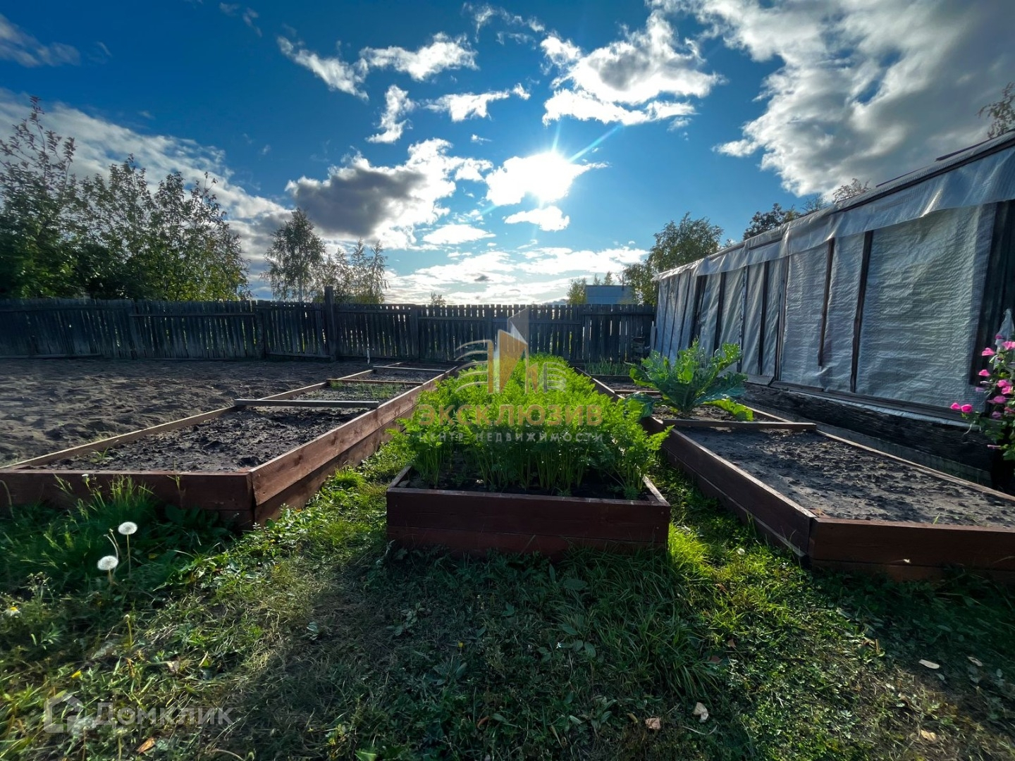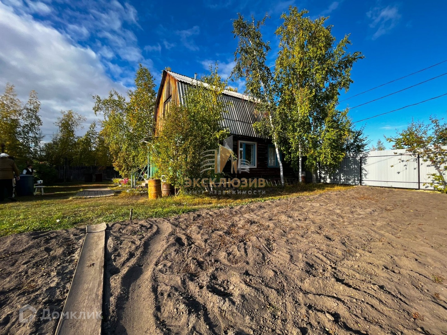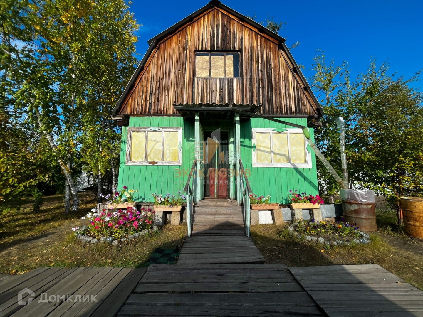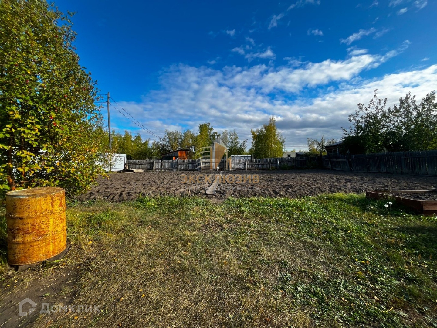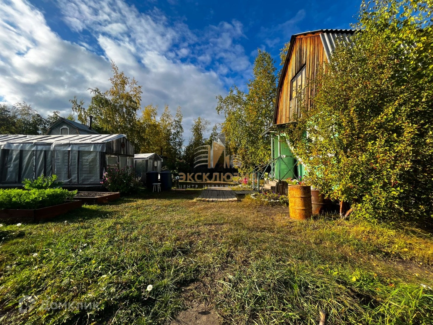 На участке много берёз, плодовых кустарников (смородина, малина), посажена земляника