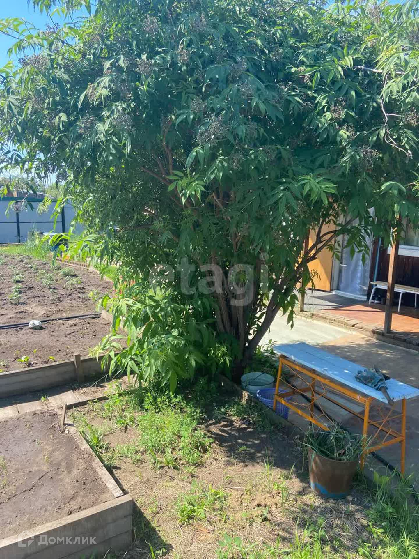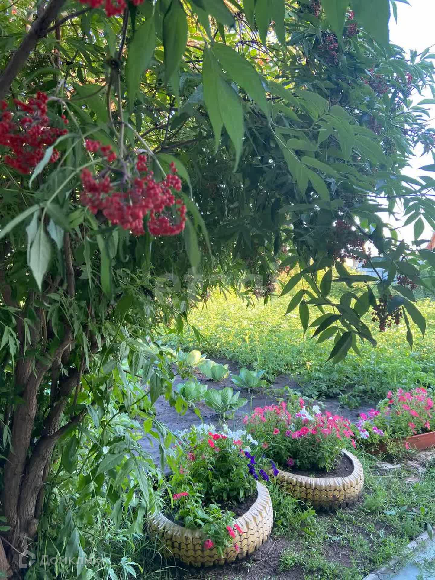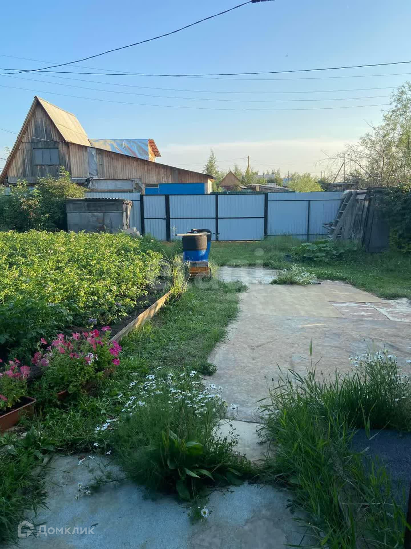 На участке имеется маленький домик, летняя кухня, две теплицы, 11 грядок, курятник, бытовые постройки.