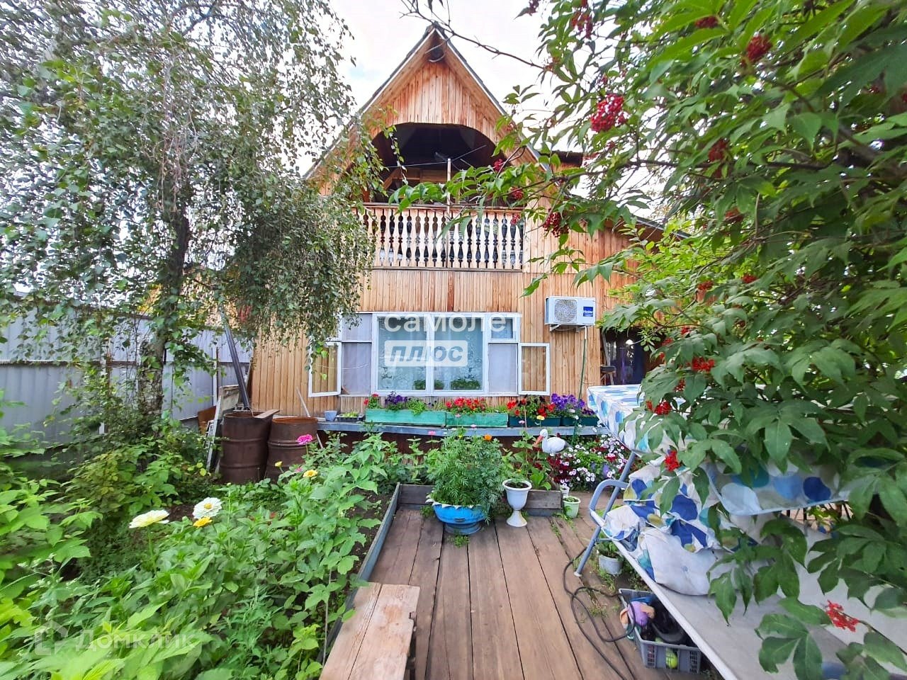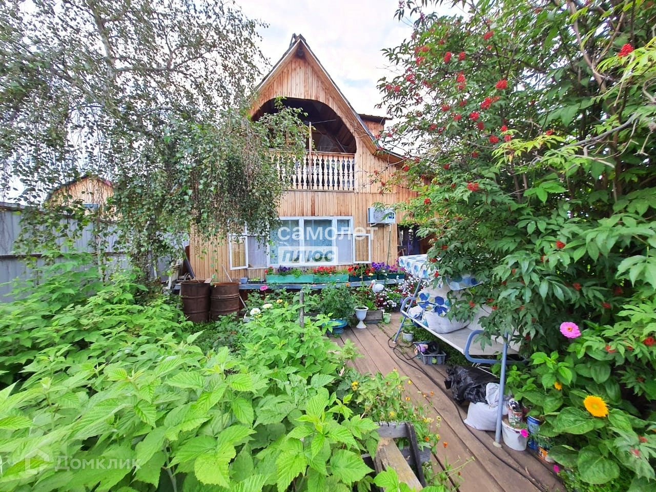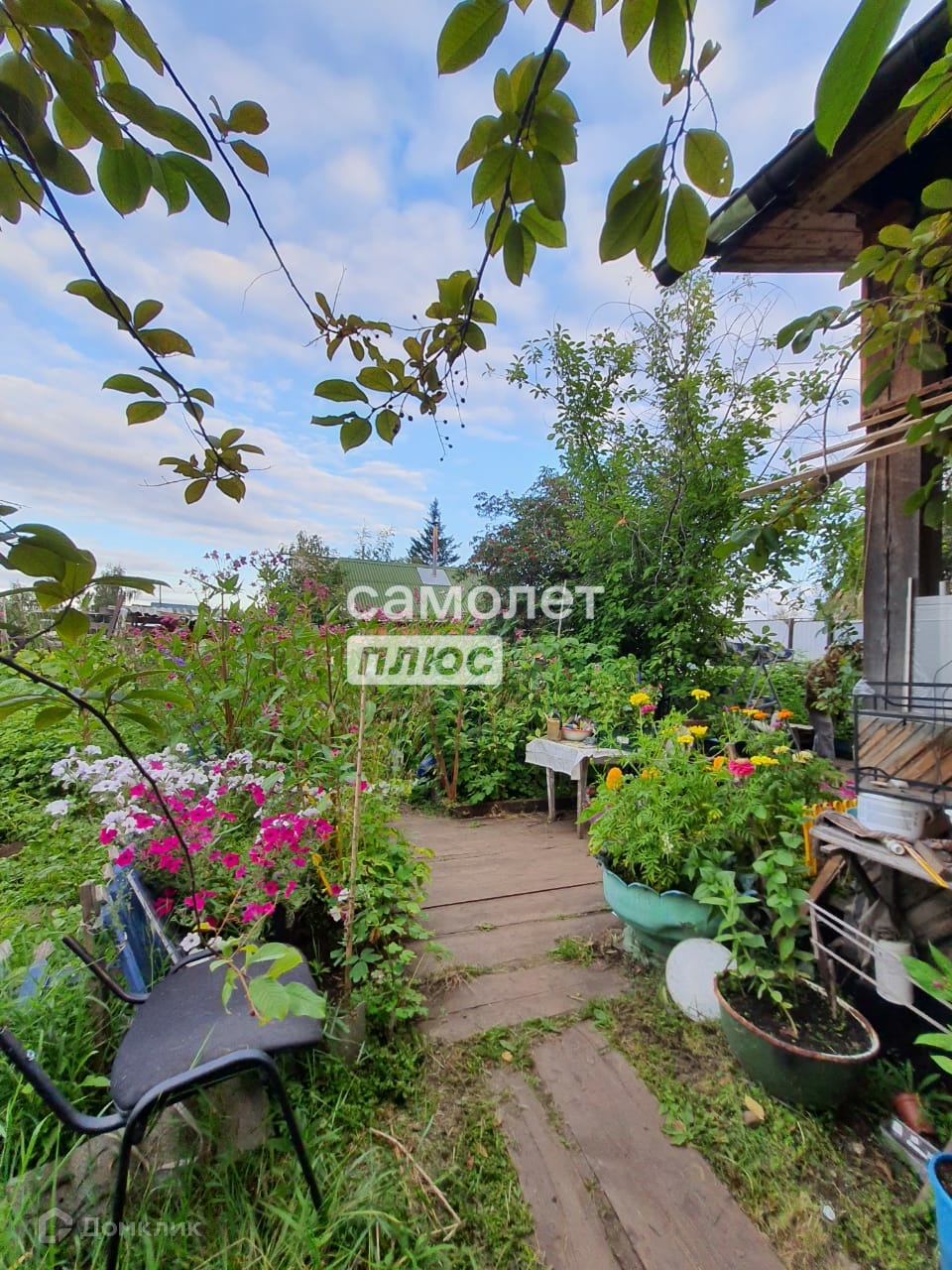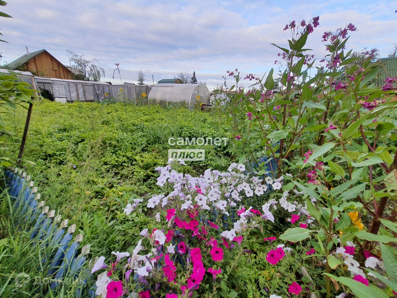 Черемуха 2 куста, сирень 2 куста, черная смородина 4 куста, малина, жимолость, клумбы под цветы, много грядок, огород .