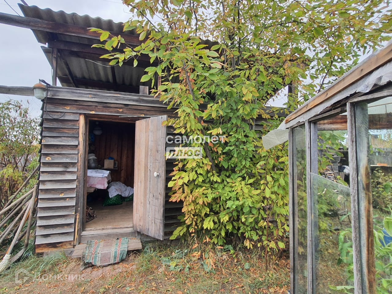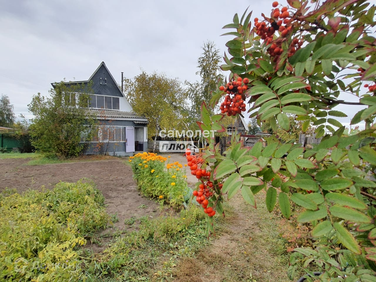 На участке - очень красивые березы, черемуха, сосна, бузина, рябина,красная/черная смородина,охта.