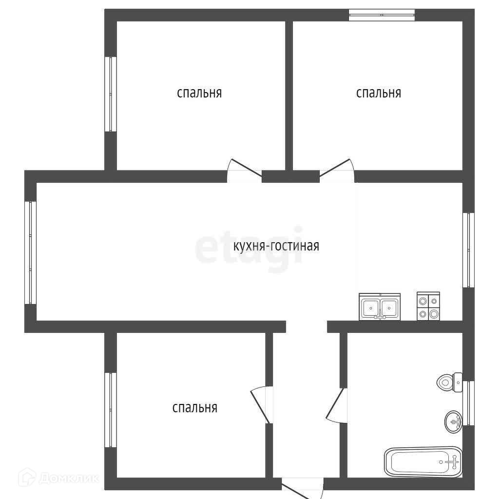 На участке построен дом площадью 67,5 кв. м, в доме 3 спальные комнаты, совмещенная кухня-гостиная, санузел и прихожая, дом обеспечен всем необходимым для комфортного проживания.