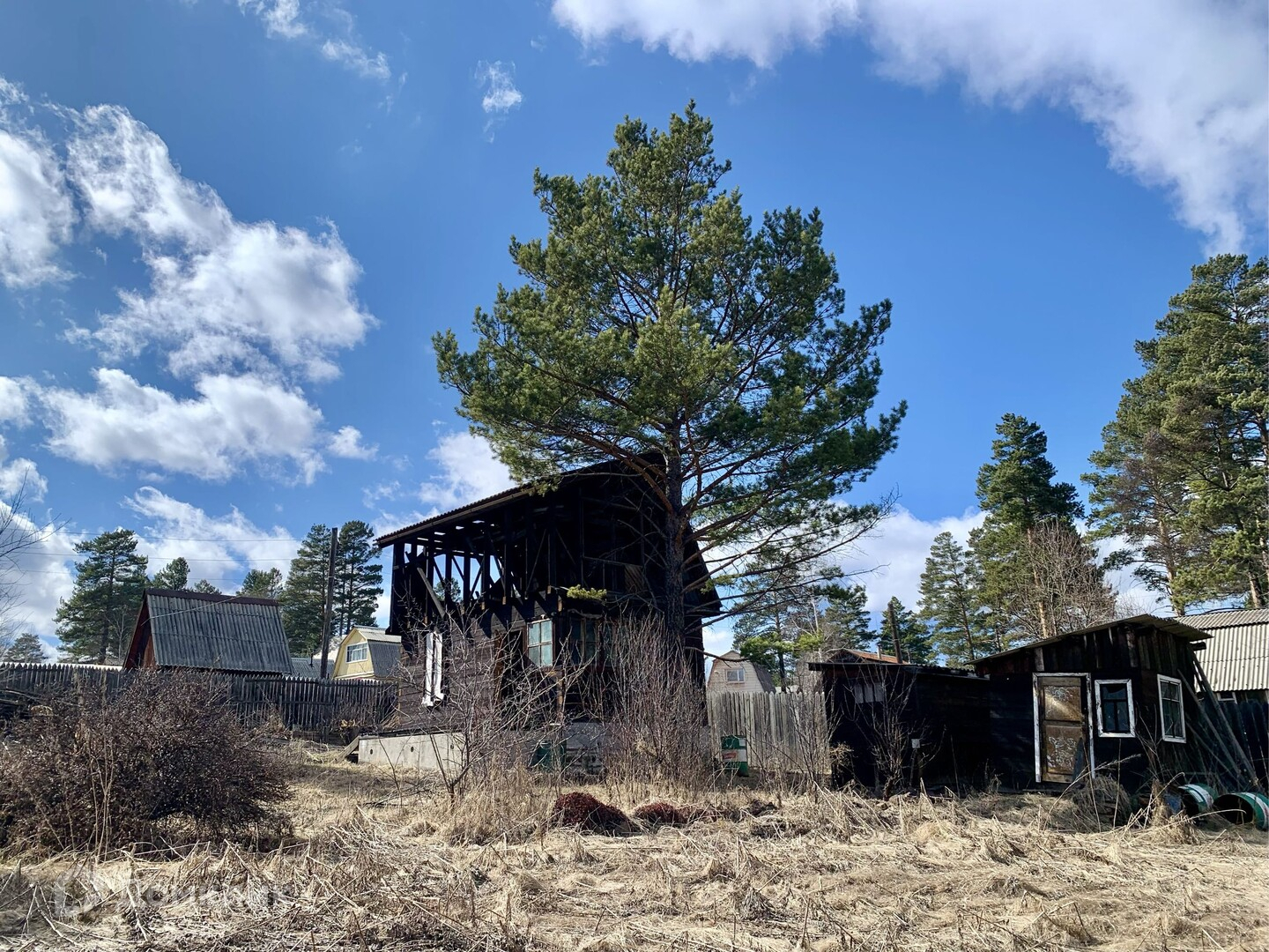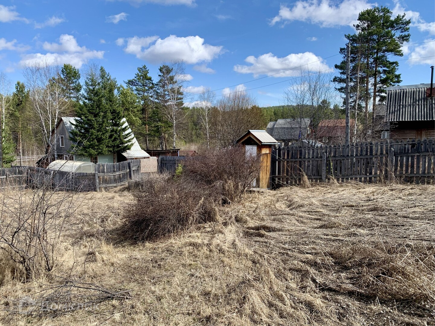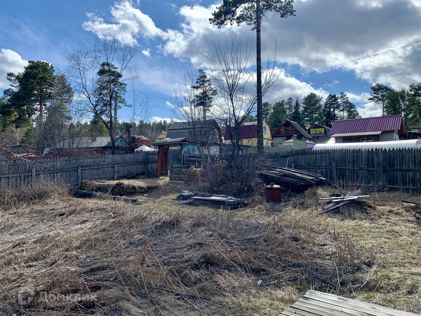 На участке посажены кусты смородины, малины, сливы, жимолости. Есть теплица (поликарбонат снят, лежит в сарае).