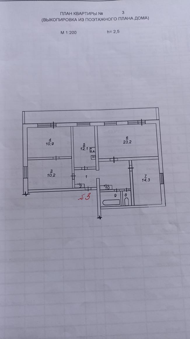 Высота потолков 2.6 м