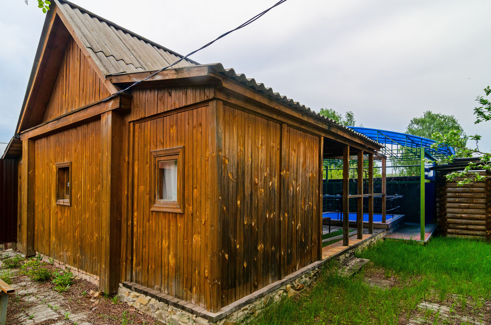 Придомовая территория(1400 кв.м.) озеленена, ухожена и благоустроена. Обнесена забором с красивыми металлическими воротами. На участке возведен кирпичный гараж (6х4), срубовая баня с бассейном под навесом, красивый мангал из природного камня, две беседки для отдыха.