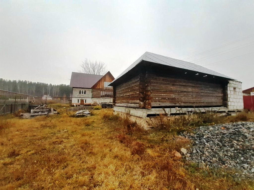 Надворные постройки: готовый сосновый сруб для бани на фундаменте 8х6 с незавершённым пристроим из пена блока.