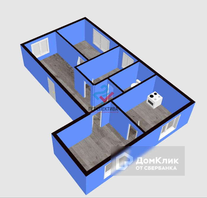 В доме 4 изолированные жилые комнаты, кухня-гостиная, просторная ванная.
