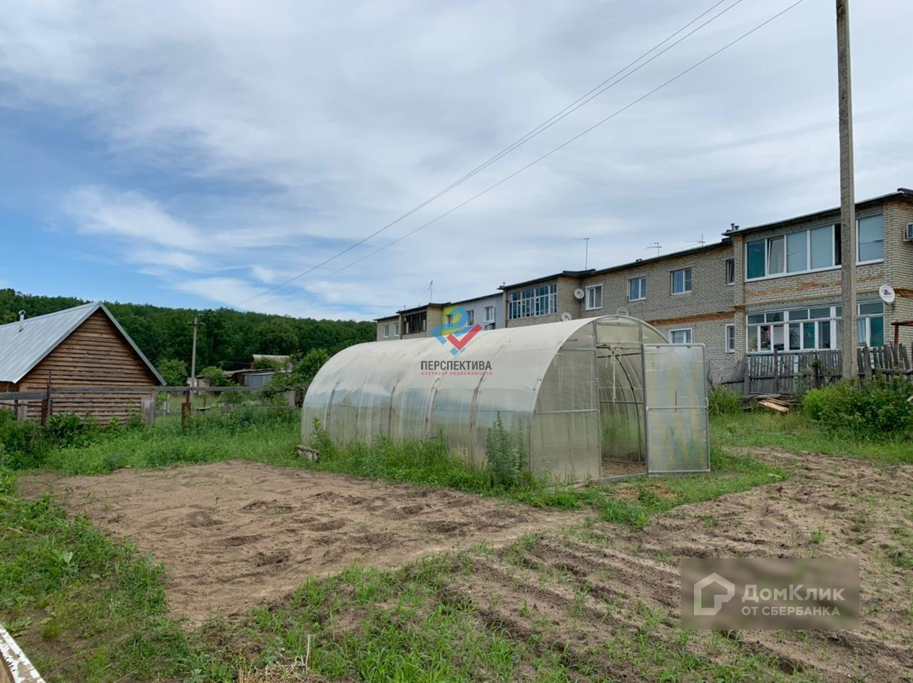 На участке благородные насаждения, установлена теплица. Сам участок ровный.