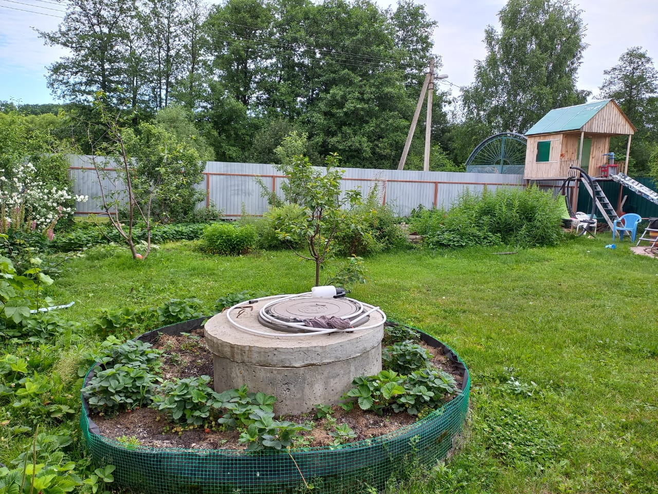 - огород с системой капельного полива.