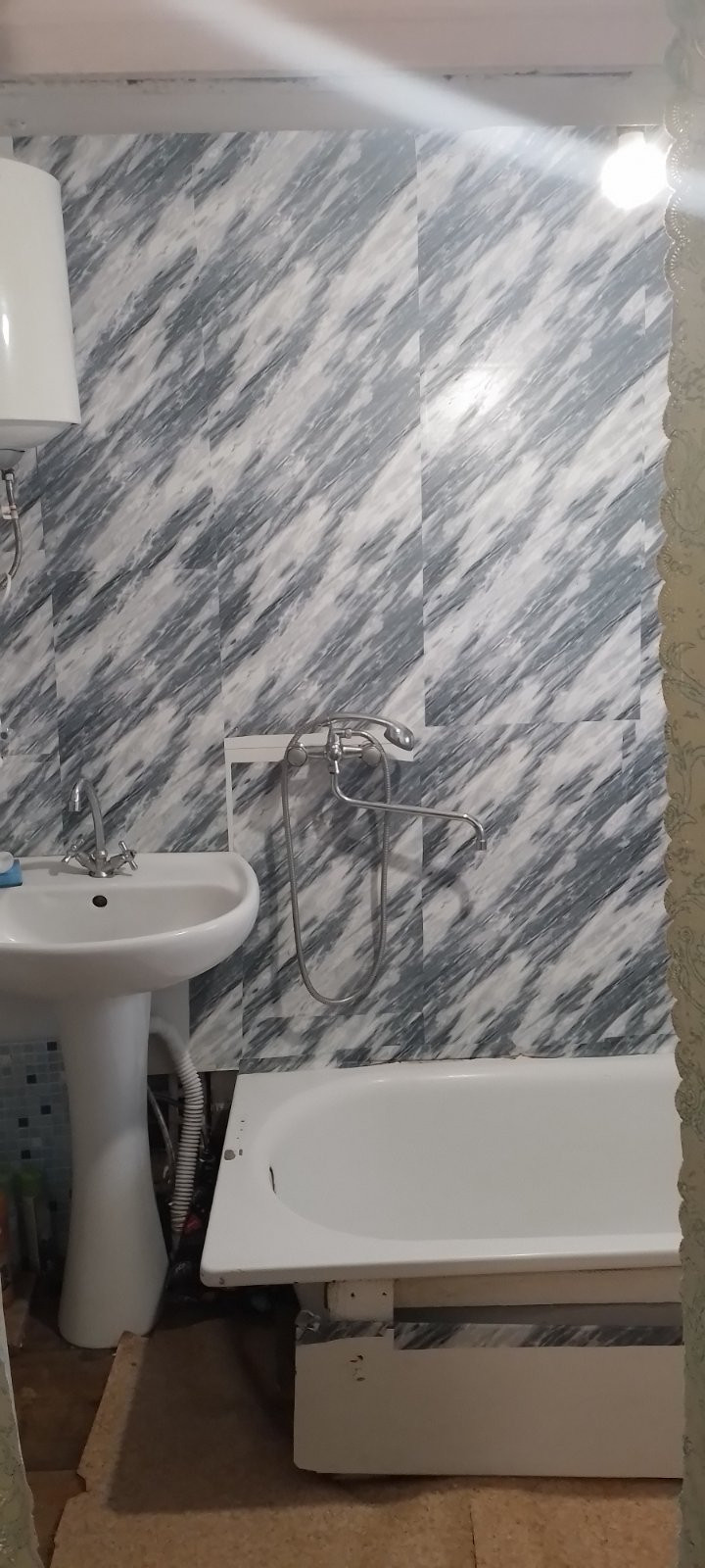 В доме - газ, вода холодная и горячая, слив, свет.