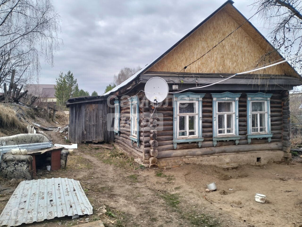Материал стен: ,бревно. Крыша покрыта проф-листом. В доме установлен двухконтурный котел, центральное водоснабжение, свет, газ, канализация (септик)