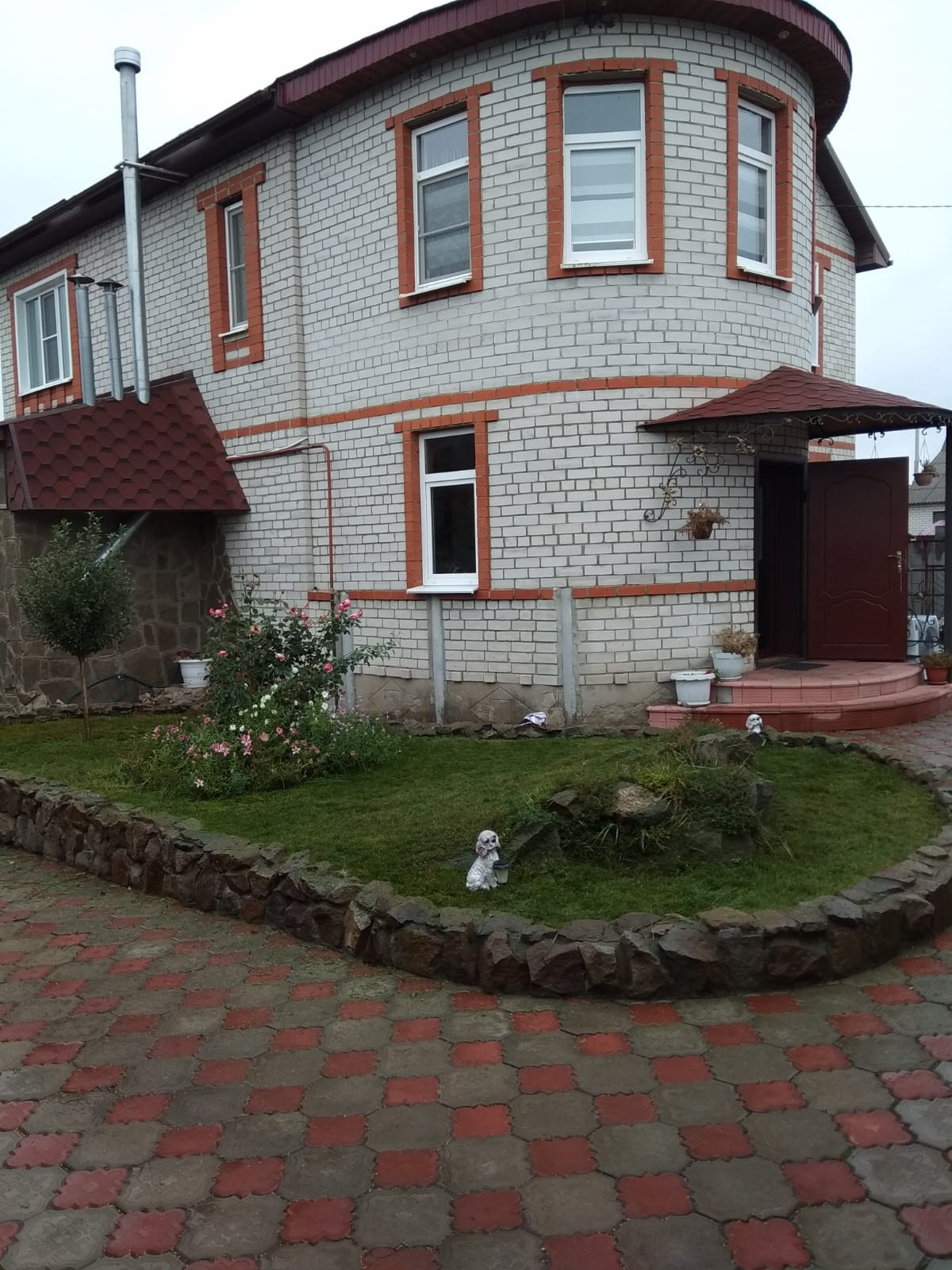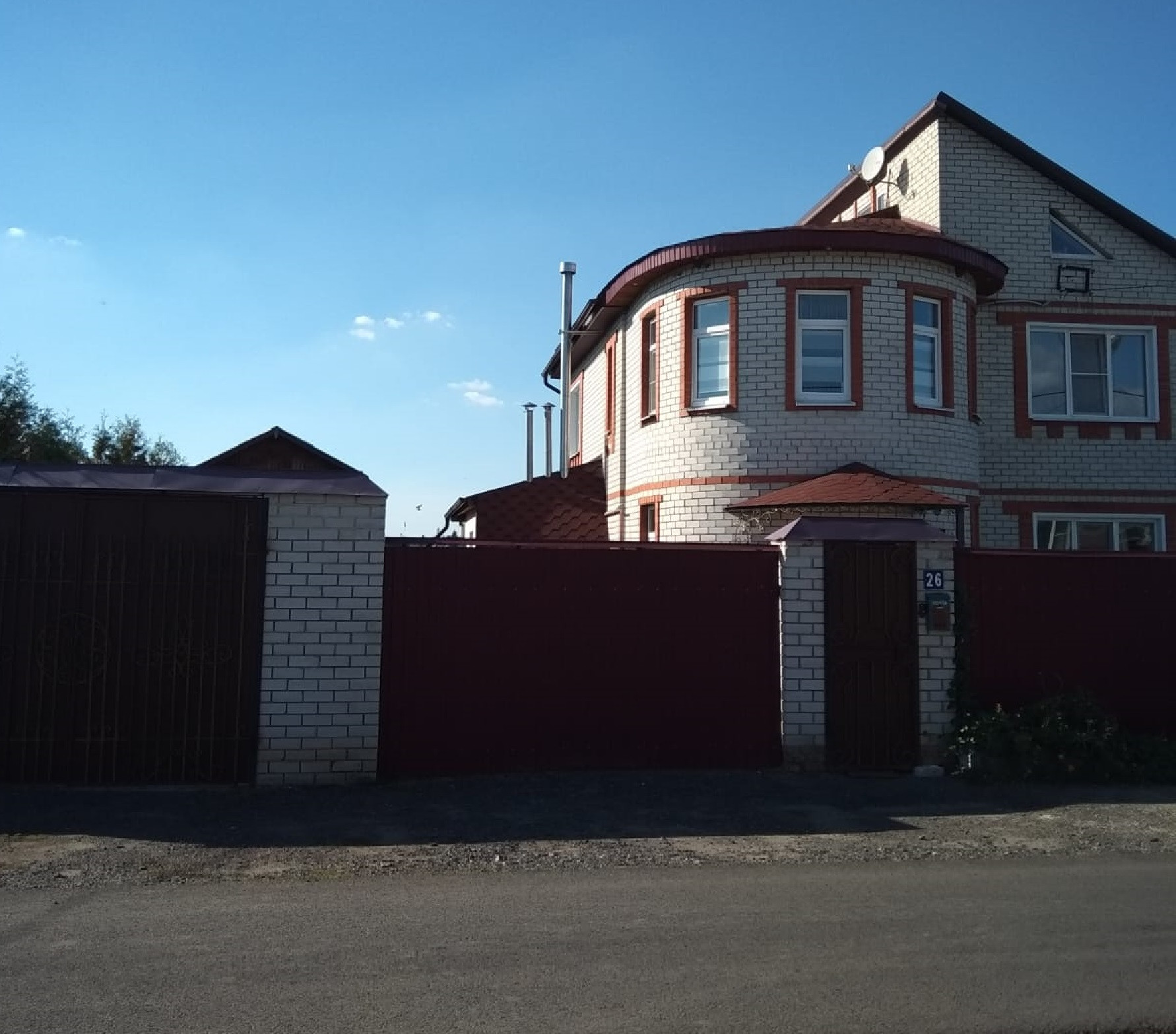 Территория двора огорожена забором (профлист, кирпичные столбы). Двор уложен тротуарной плиткой. Есть двухэтажный гараж (шлакоблок) 4*9 кв.м. Баня из сруба 4×8 кв.м., с парилкой, отделанной деревом (липа).