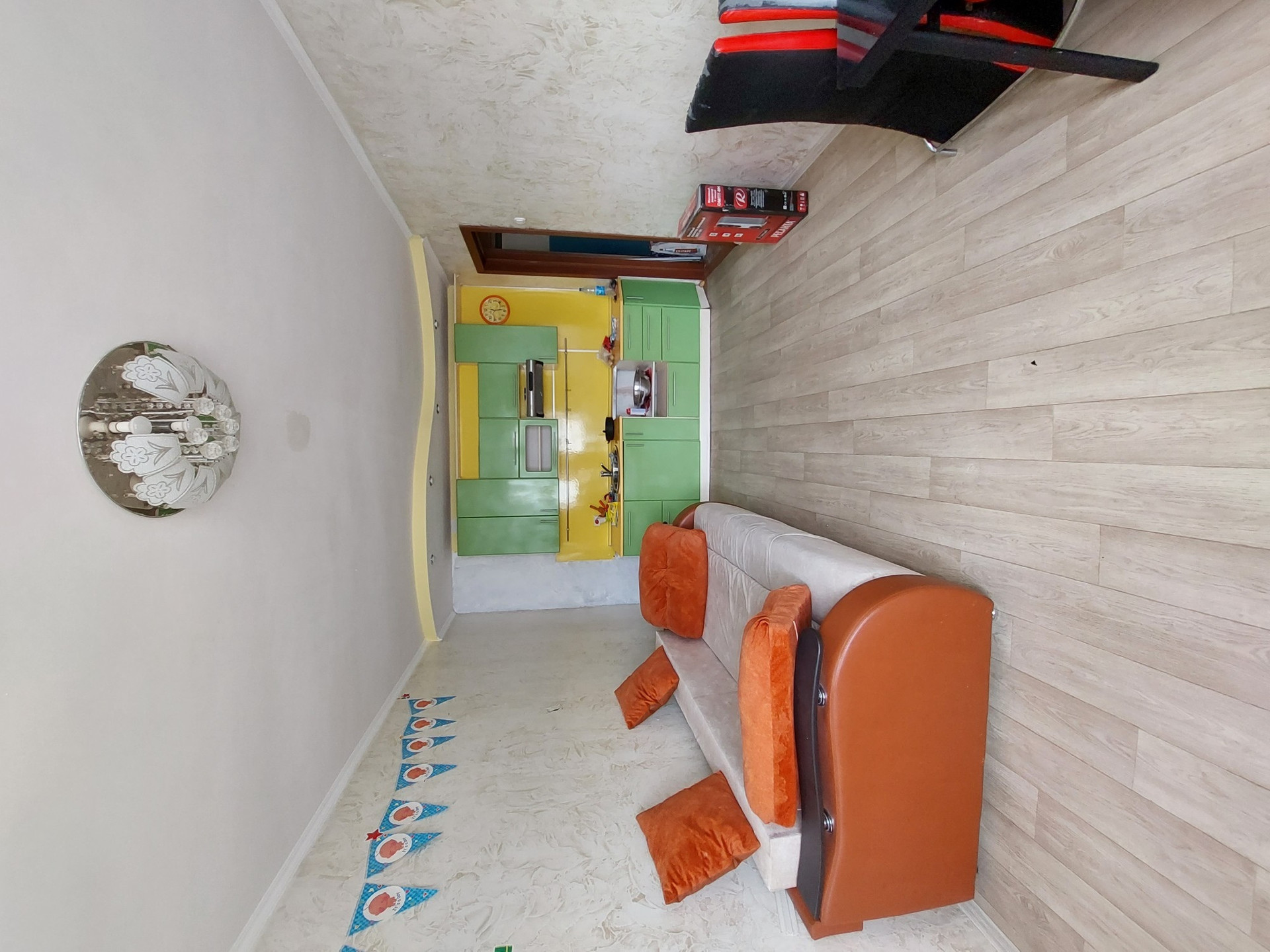 Продам тёплую, светлую 1 комнатную квартиру (переделанная в 2х). В квартире ремонт, в гостинной новый линолеум, на стенах в гостинной художественная штукатурка покрыта ЛЮМИАНОМ что придаёт стенам разные оттенки (цвет жемчуг). Раздельный сан узел ванная и туалет выложены кафелем. В квартире остаётся большой мягкий диван,бойлер на 100л, встроенный кухонный гарнитур и  встроенный шкаф купе с тремя зеркалами,вай фай интернет. В подъезде есть секция на 4 квартиры наш общий балкон, так же можно оставить коляску или что-то ещё соседи все дружные не шумные сами дижурим всегда чисто. Реальному покупателю торг.