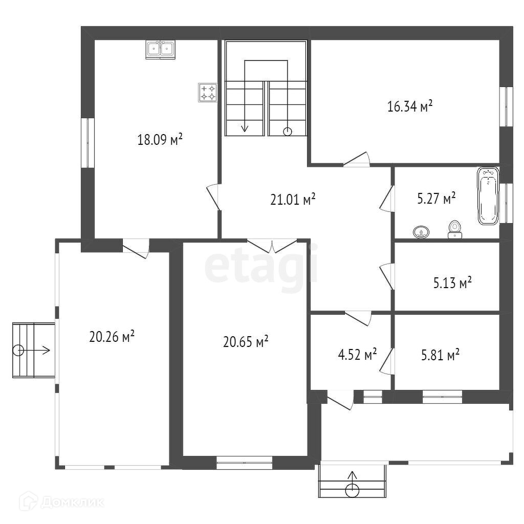 В доме два входа с крыльцом и террасой, гостиная. Балкон на втором этаже добавит в вашу жизнь романтики, тем более приятно, что попасть на него можно только из одной спальни.