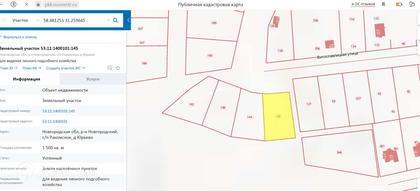 - Земельный участок, по адресу: р-н Новгородский, с/п Ракомское, д Юрьево - Кадастровый номер: 53:11:1400101:145 - Площадь участка: 15 соток, назначение ЛПХ - Участок прямоугольной формы, сухой, ровный - Рядом идет активная застройка индивидуальными коттеджами - Хорошие, круглогодичные подъездные пути, рядом река Волхов с песочными пляжами, Юрьевский монастырь. Расстояние от г. Великий Новгород 7 км. - Свежий градостроительный план в наличии, историко-культурная экспертиза проведена! Не упустите свой шанс!!! Звоните!