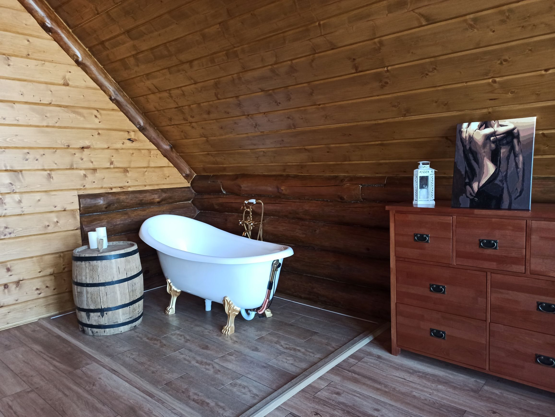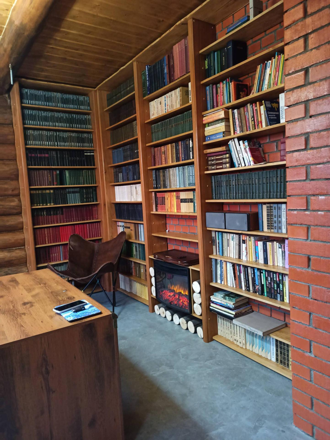 Отдельно стоящая баня с гостевой также привлекает внимание. Можно сидеть у камина и наблюдать за огнем.