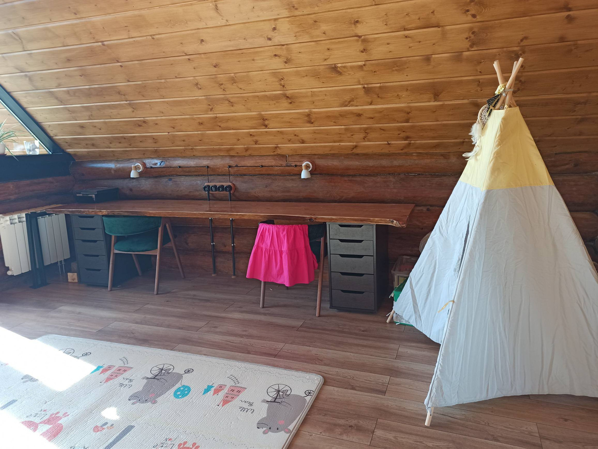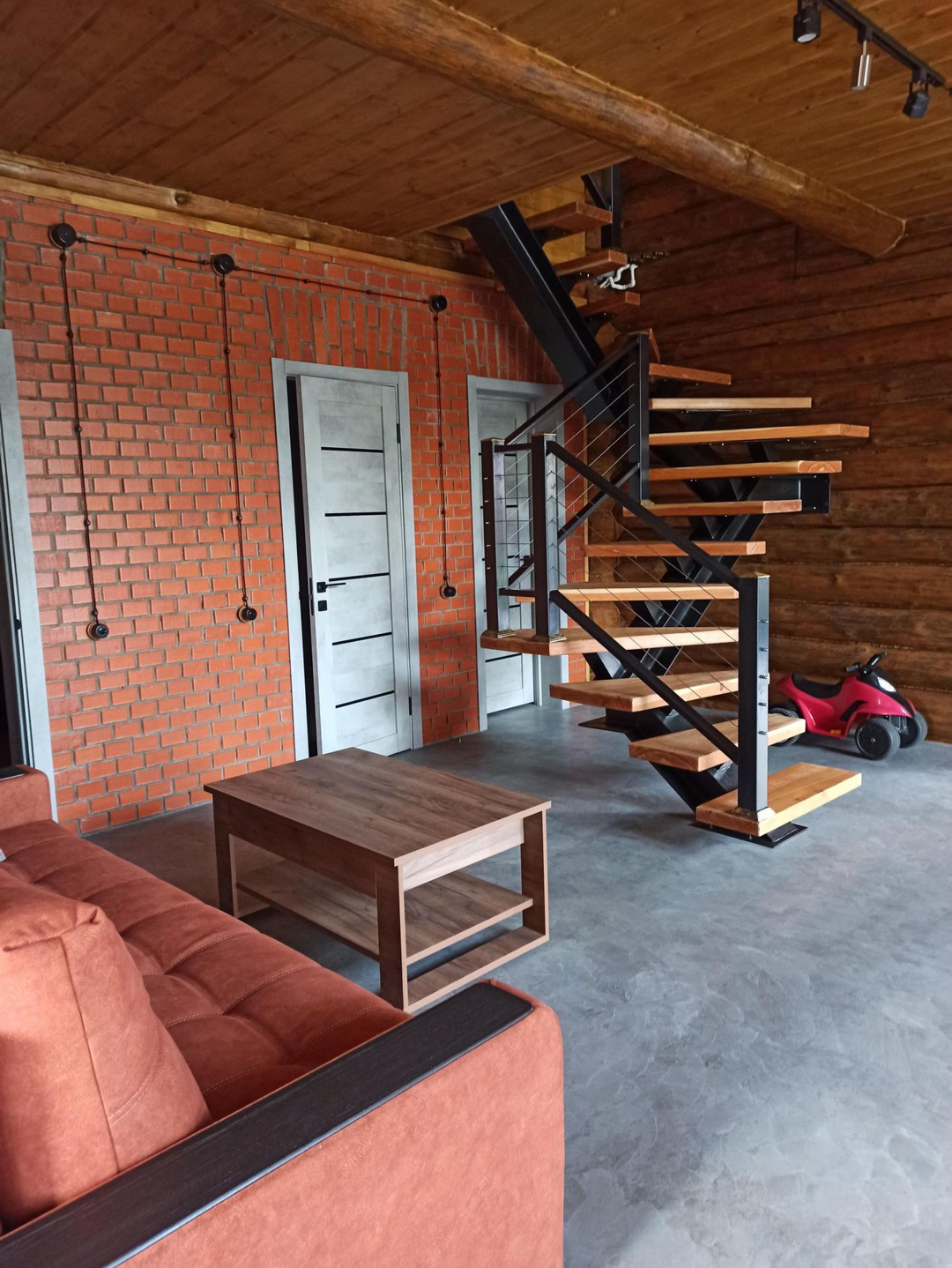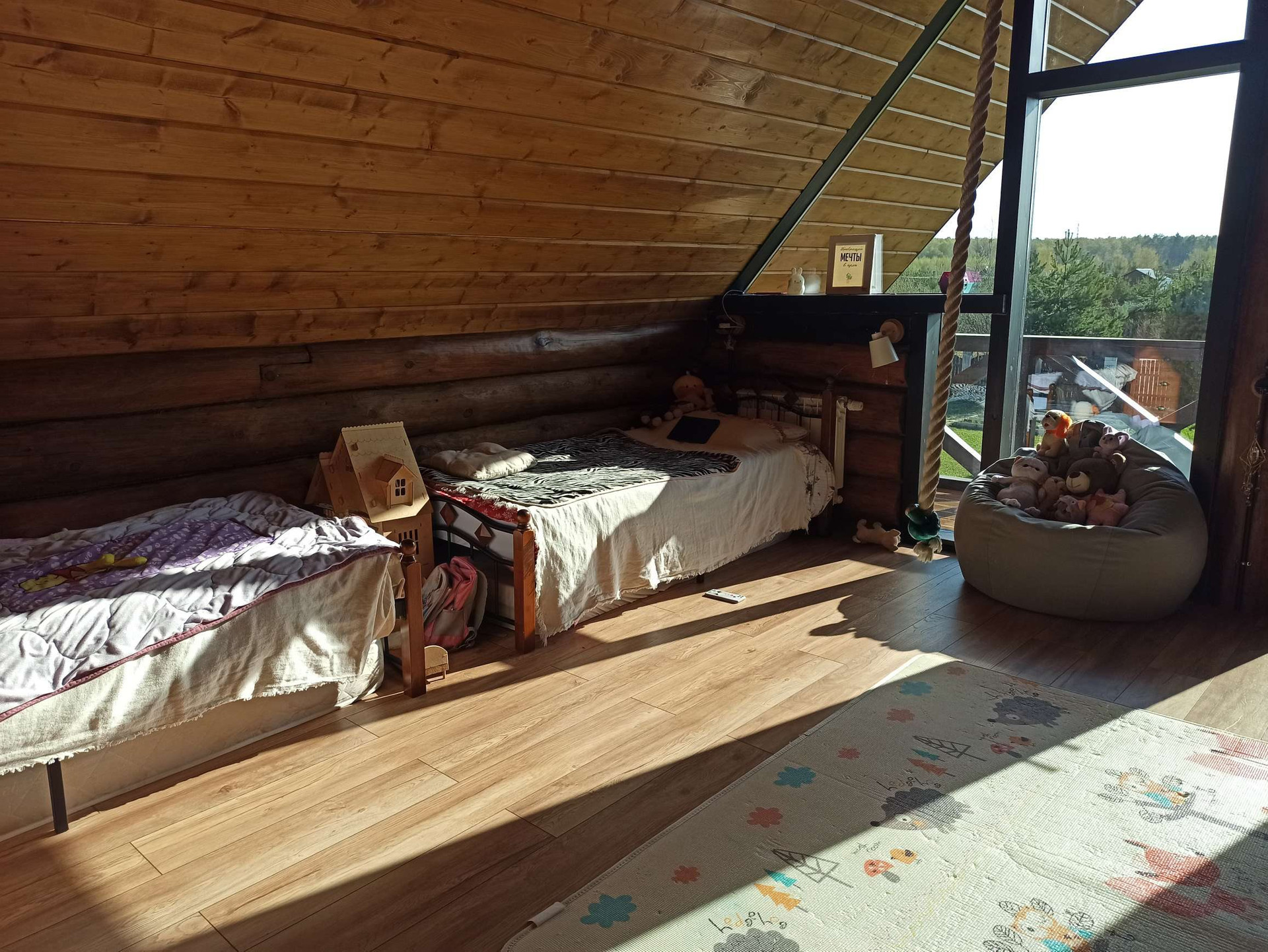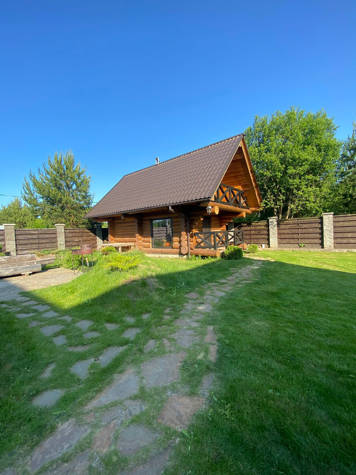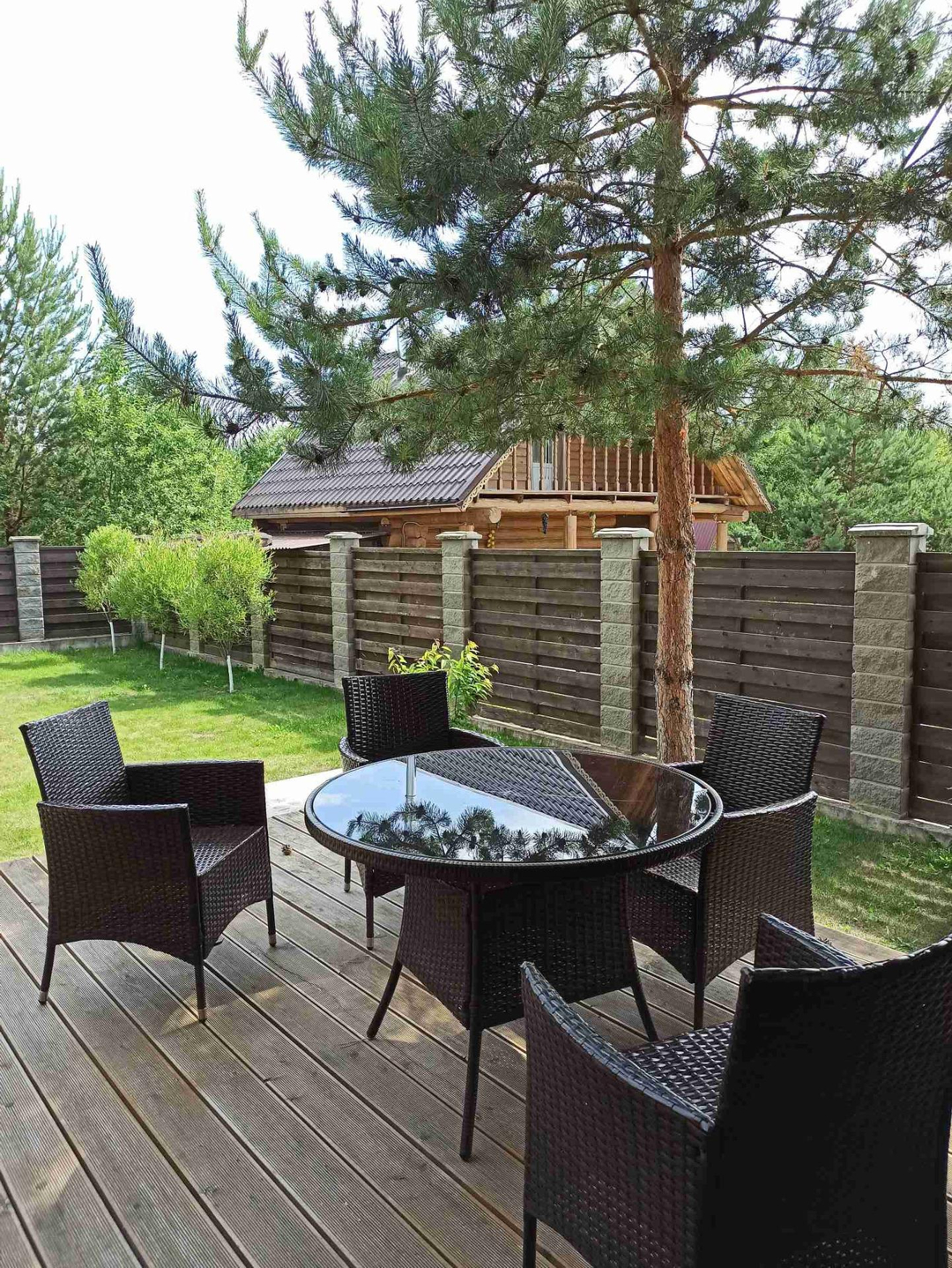 220 кв. м. со вторым светом. Строили для себя скрупулезно и с душой. Стоит на двухметровом заглубленном свайном фундаменте с ростверком по всему периметру дома. То же самое касается забора, бани и гаража, что говорит о долговечном эксплуатировании до нескольких поколений. Высота потолков в самой высокой точке достигает 6.5 метров, в спальне и других помещениях потолки до 4 метров. Дом выполнен по индивидуальному проекту: на первом этаже просторная гостиная, столовая, рабочий кабинет (библиотека), гардеробная, раздельный санузел, котельная. На втором этаже 3 спальни и зона отдыха. Одна спальня спроектирована с отдельно стоящей ванной. Терраса- мангальная с выходом со столовой.