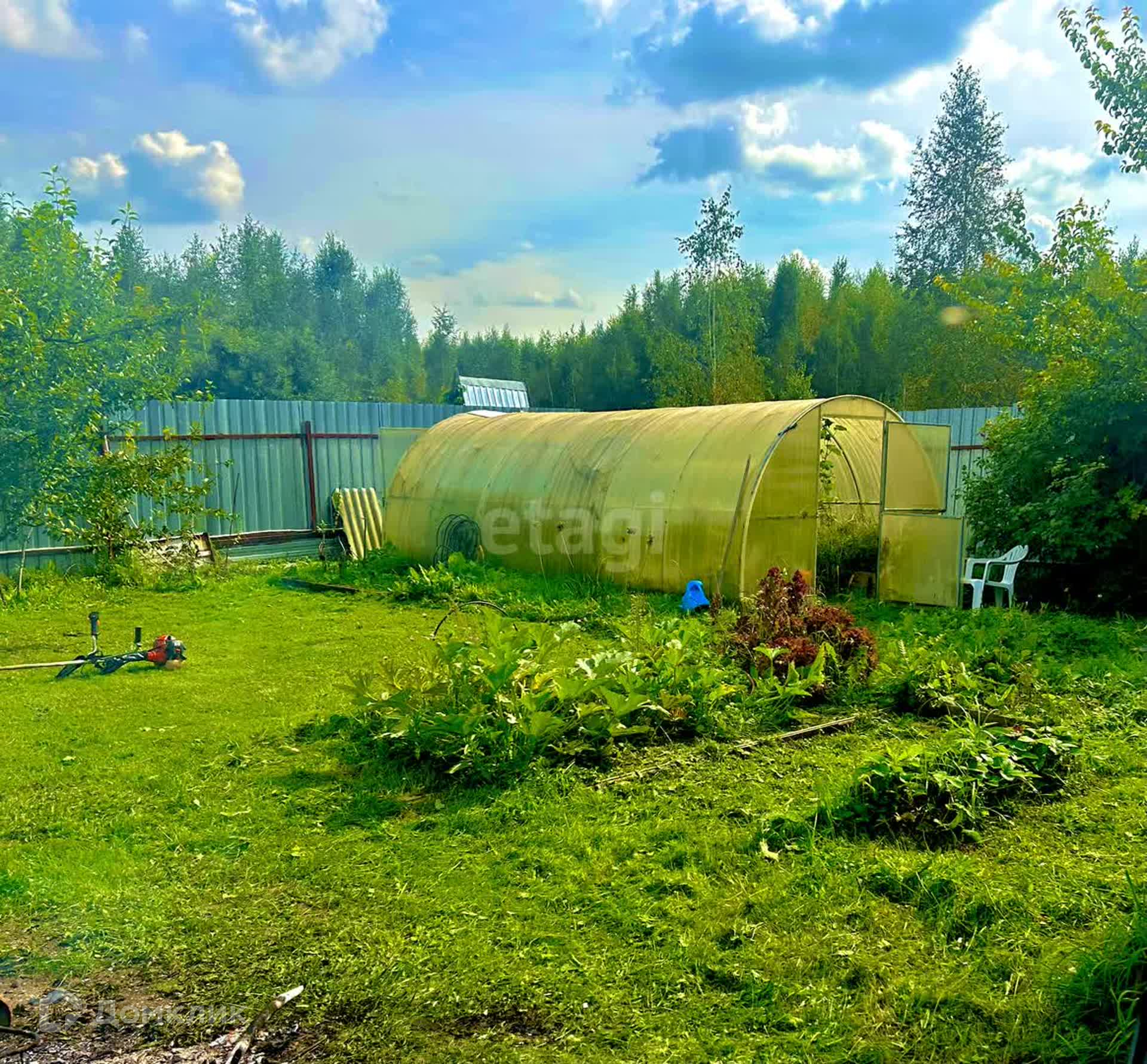 Участок 10 соток, огорожен. На участке есть действующая баня, гараж, теплица, беседка, помещения для разведения кур, кроликов и т.д. Растут садовые и плодовые деревья.
