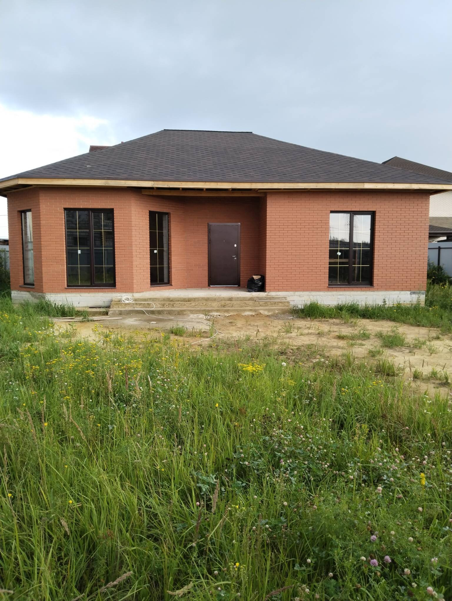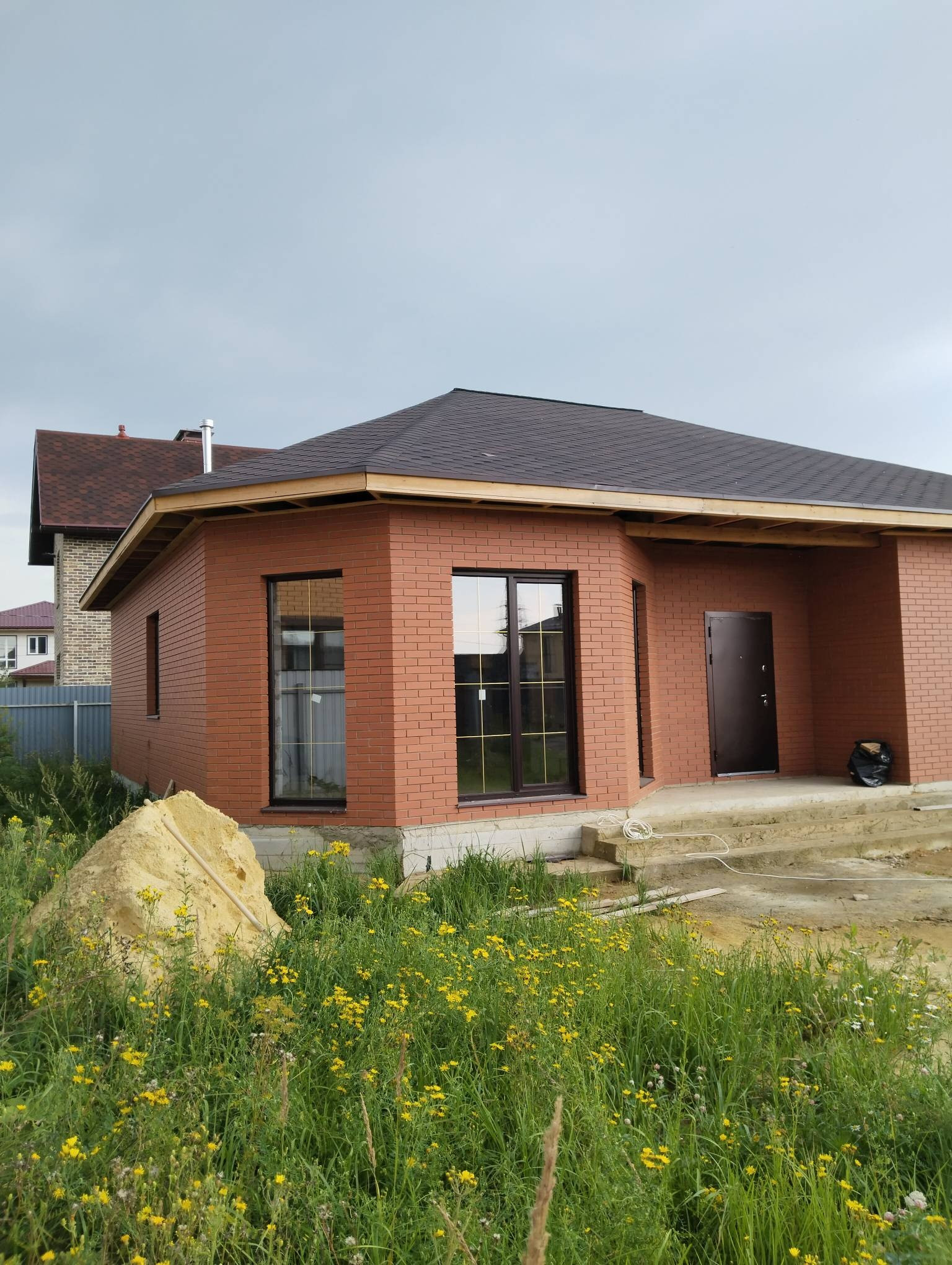 Крыша,гибкая черепица. Высота потолков 3.10.участок огорожен забором.