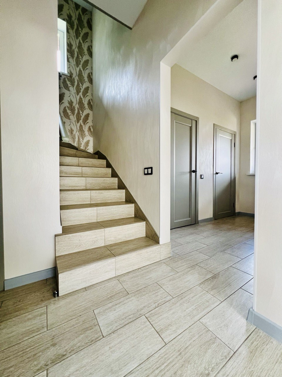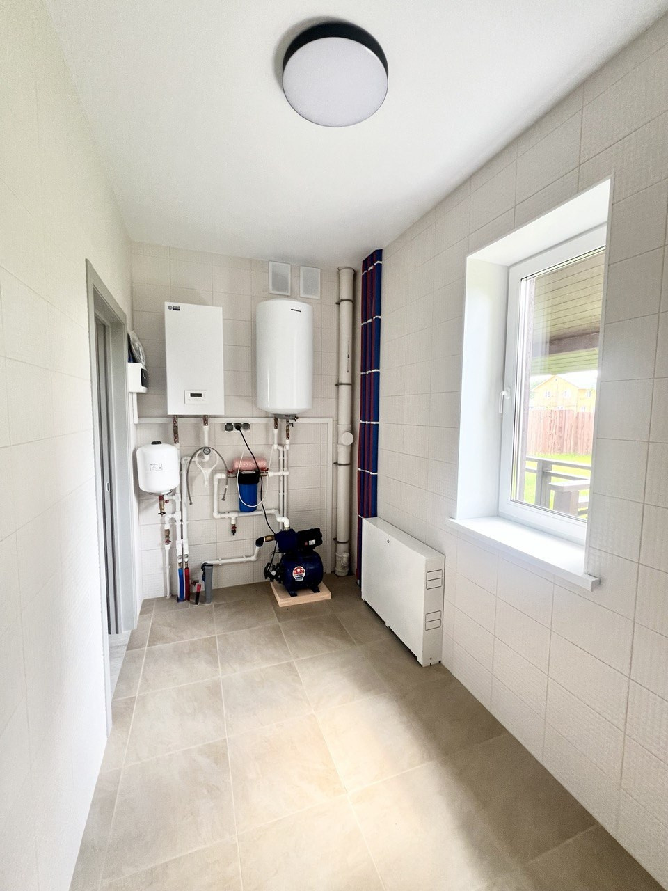 На первом этаже: просторный входной холл - 12 кв.м, уютная и светлая кухня-гостиная, общий санузел, гардеробная и оборудованная бойлерная.