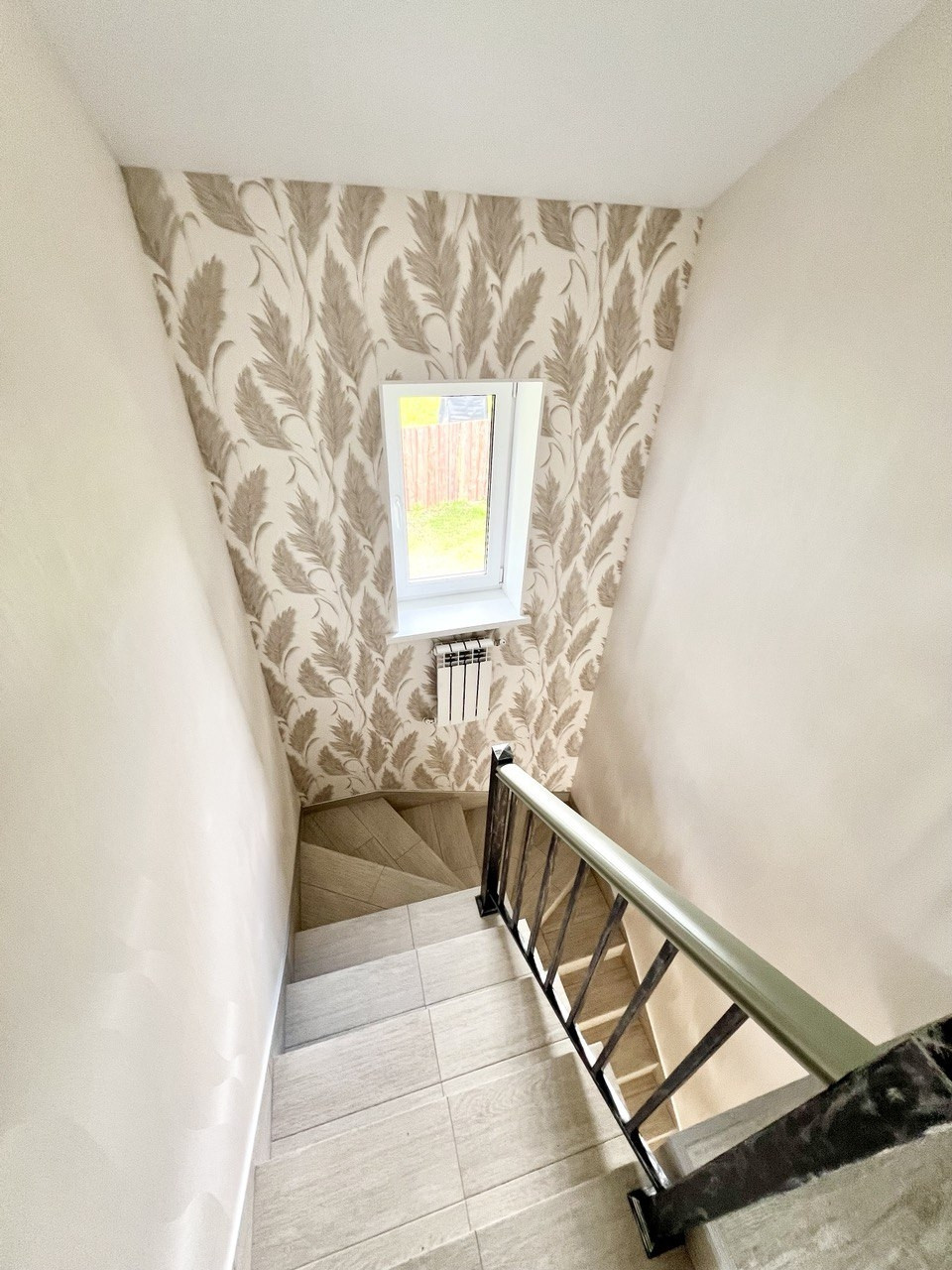 Второй этаж: три спальни, большой санузел с видом из окна.