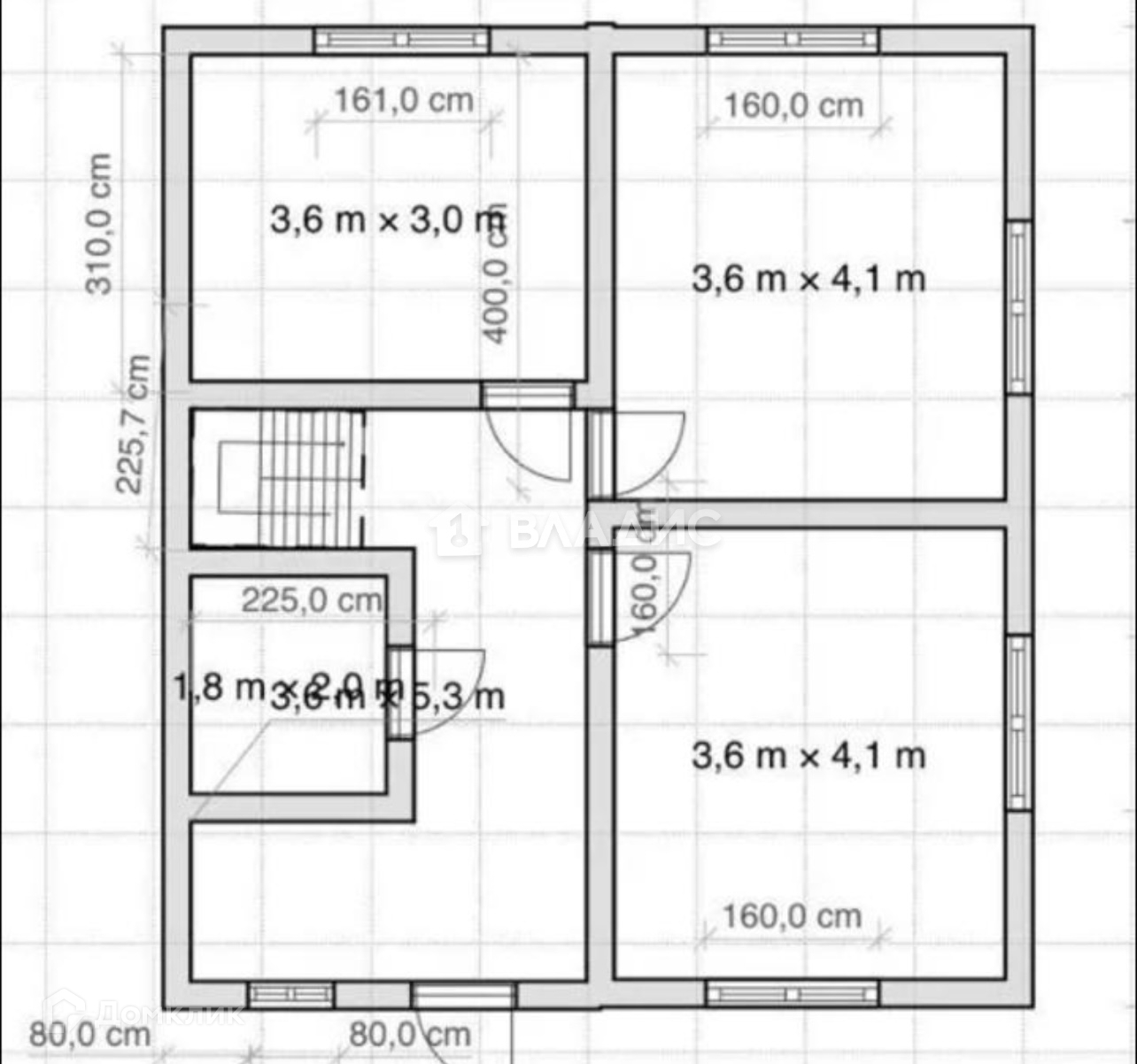 Второй этаж три комнаты, одна 11 метров, и две по 15 метров, санузел.