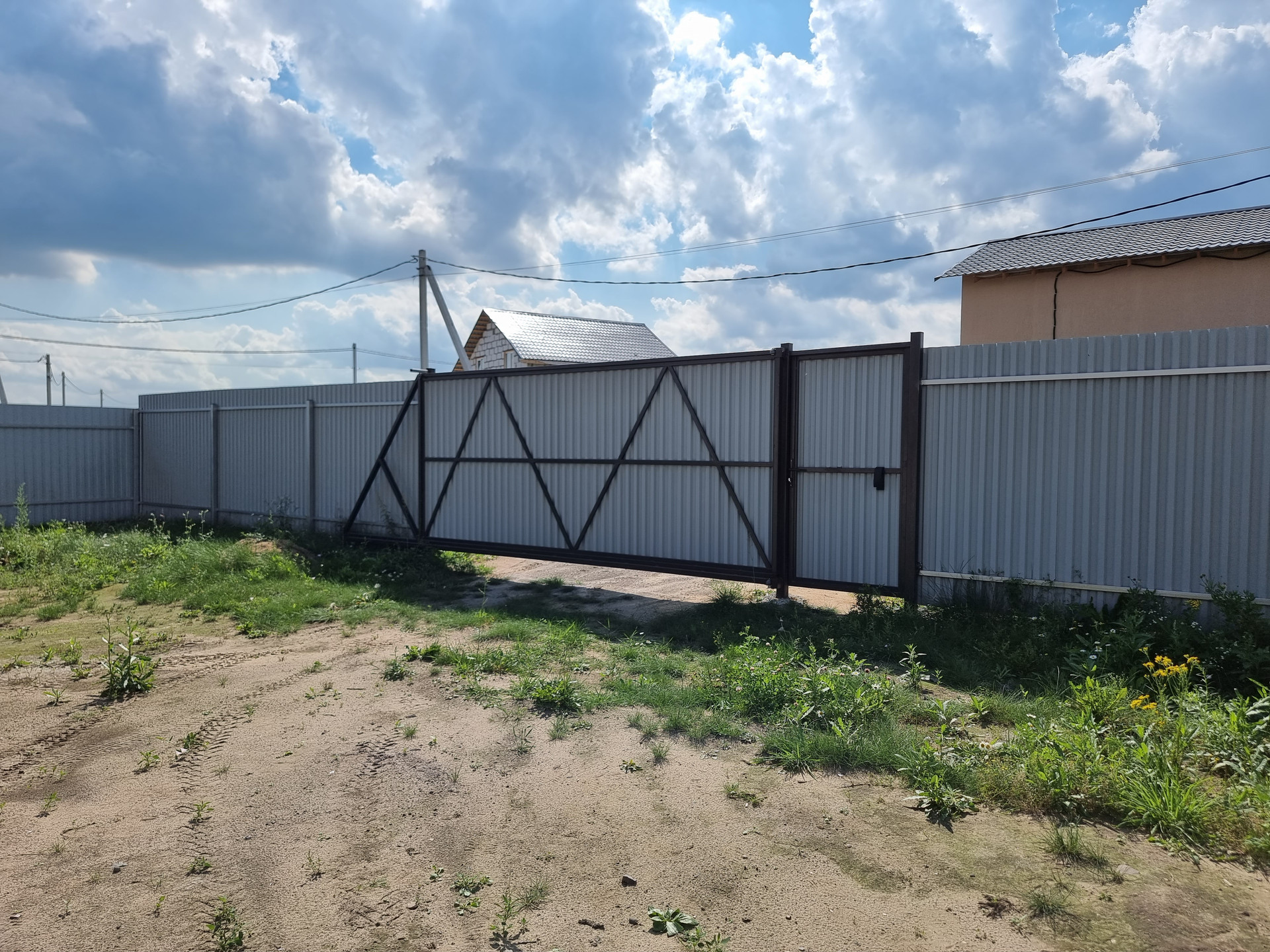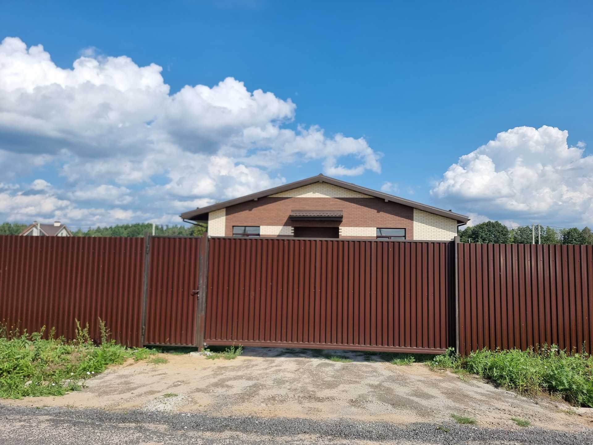 Участок огорожен забором, въездная группа 4.5 метра откатные ворота+ калитка.