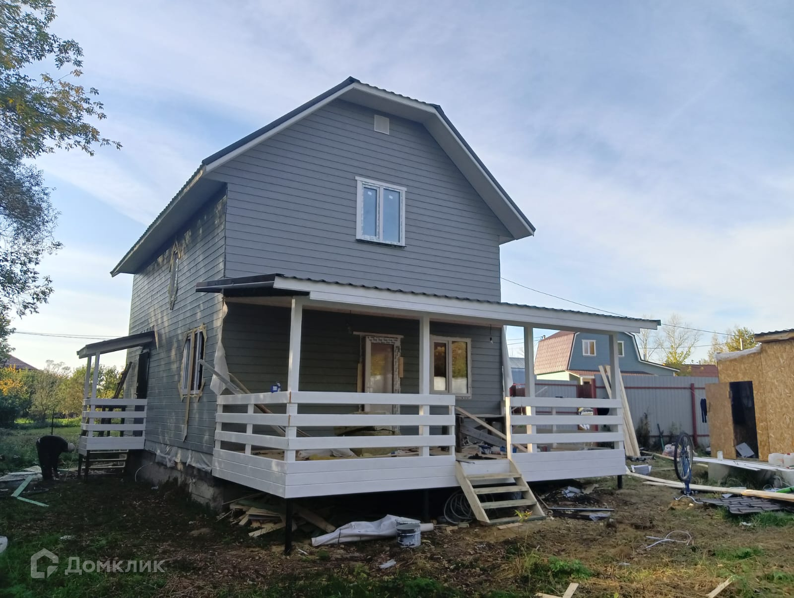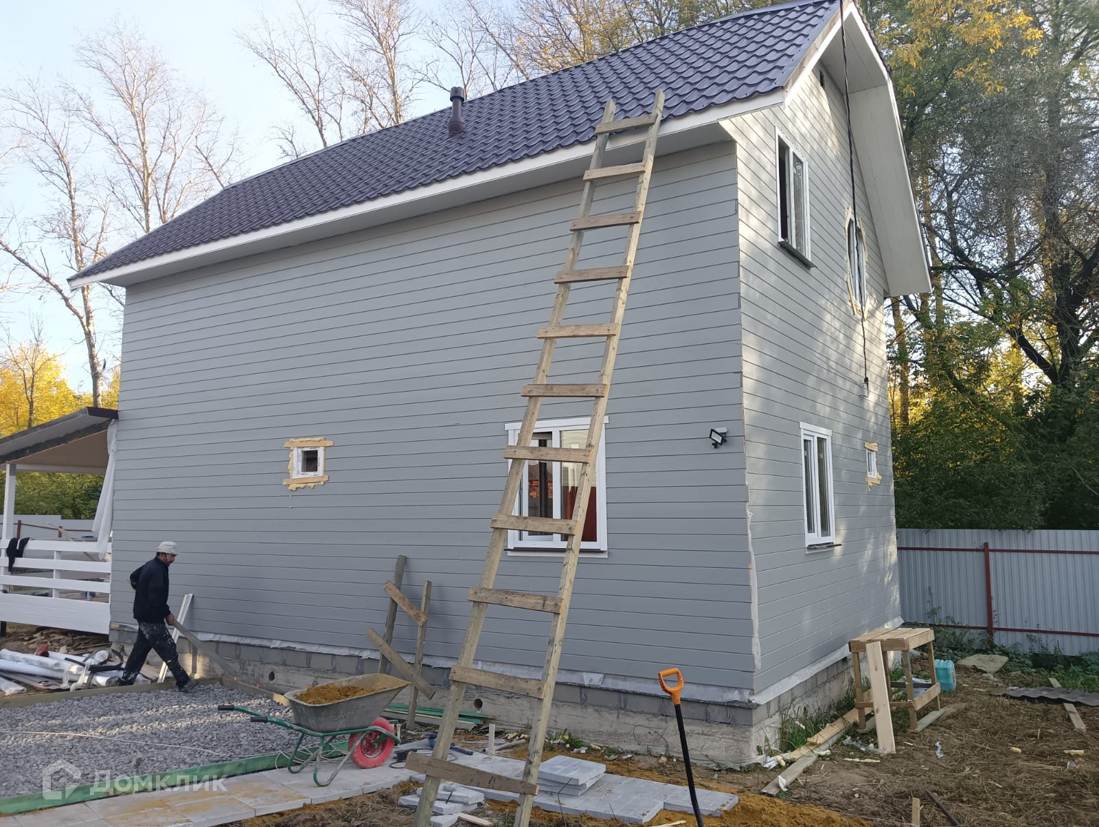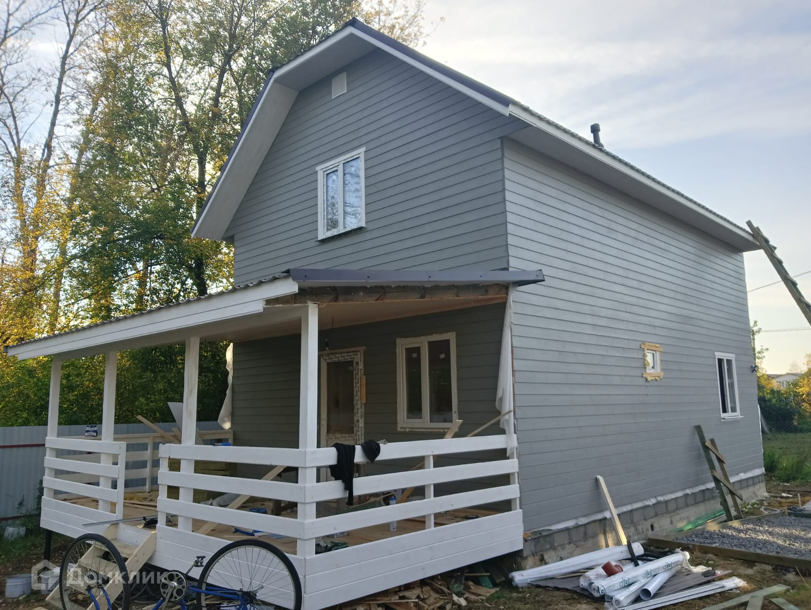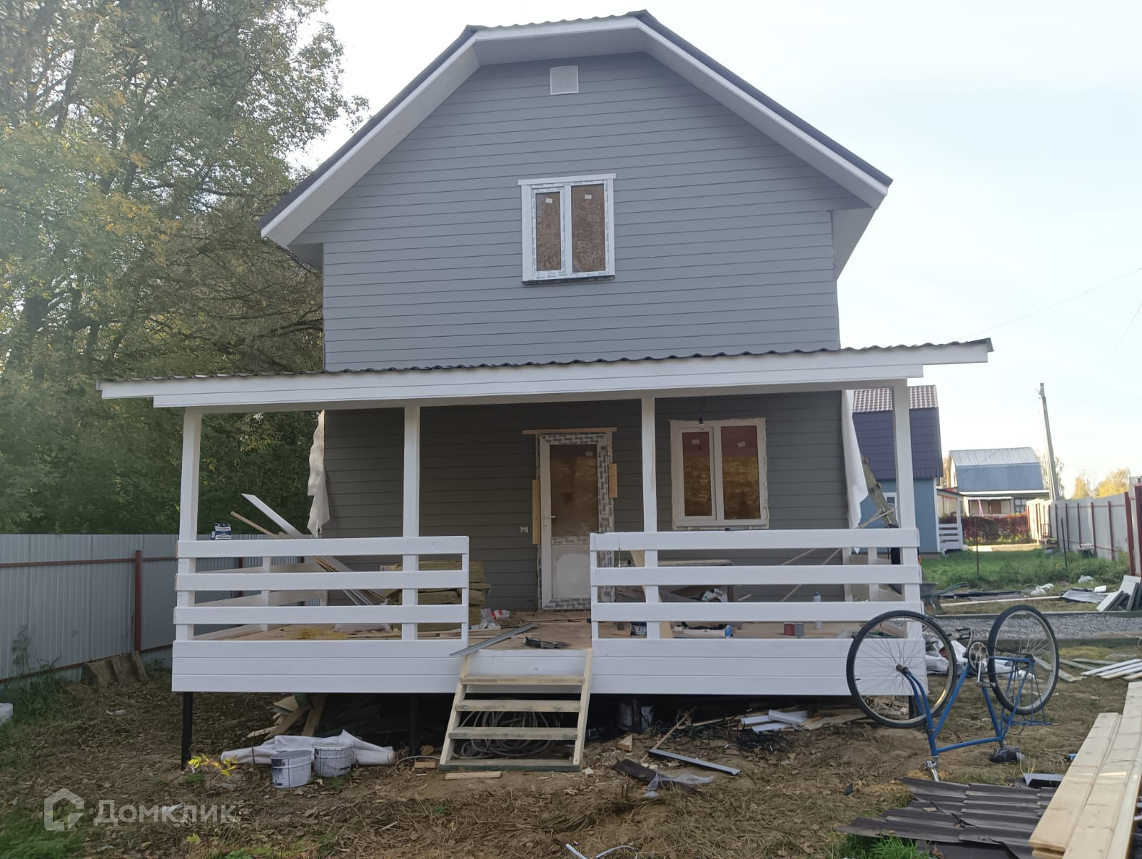 Участок с забором, распашные ворота, калитка, парковка и плитка до дома. Современный дом,полностью готовый для круглогодичного проживания.