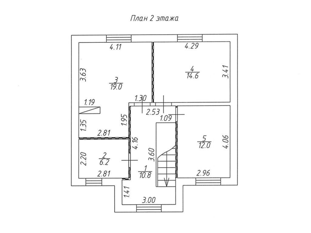 2 этаж: 3 спальни (12/14.5/19м2), санузел.