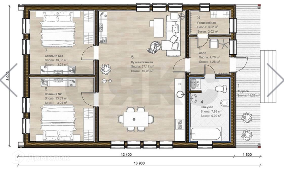 Дом теплый и уютный! Планировка дома прилагается в разделе фото - просторная терраса 12 м2, возможно собираться большой компанией на свежем воздухе. Кухня-гостиная 37 м2 с панорамным остеклением - достаточно места, чтобы собираться всей семьей. Также две изолированные комнаты, холл с выходом в гардеробную и сан. узел.