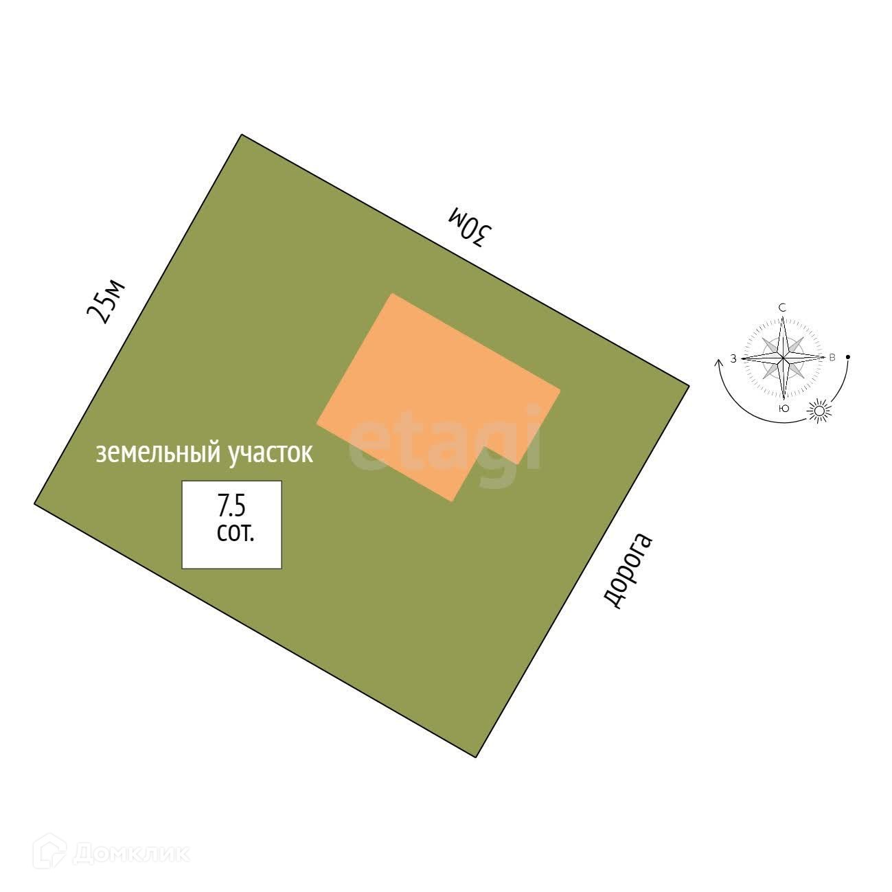 Площадь участка 7.5 сот.