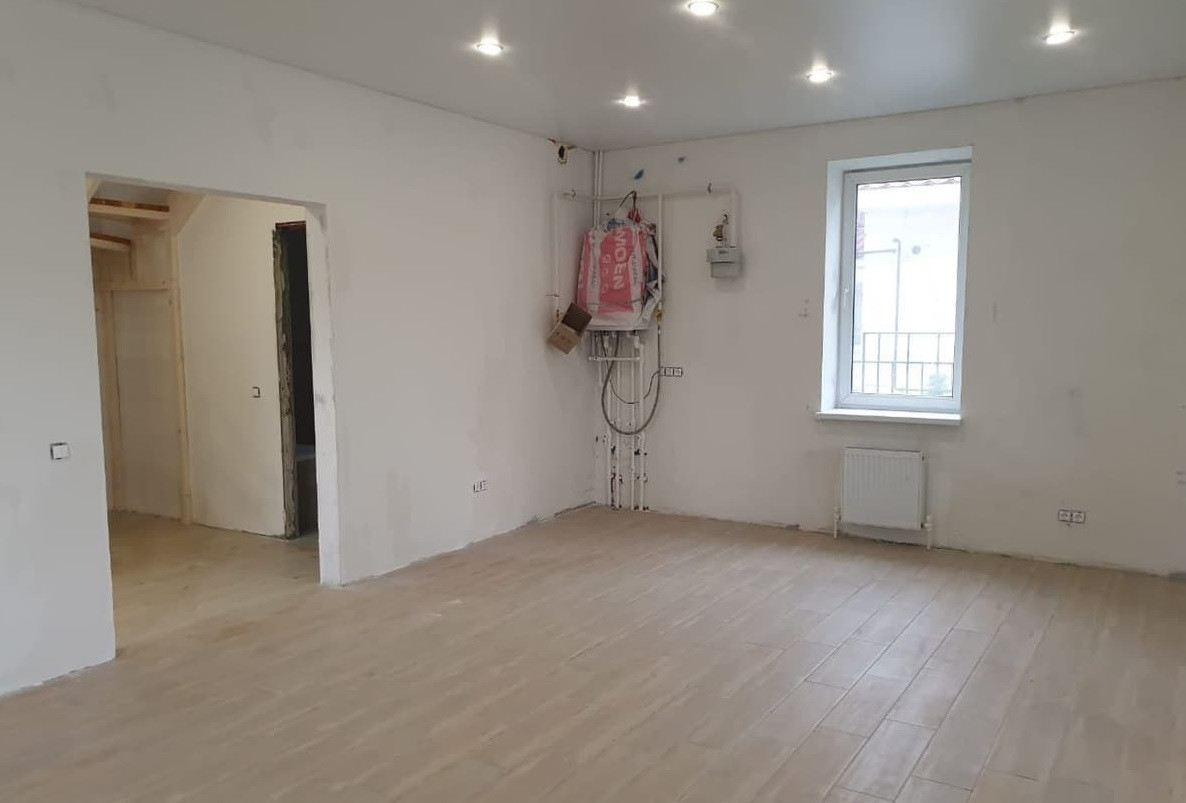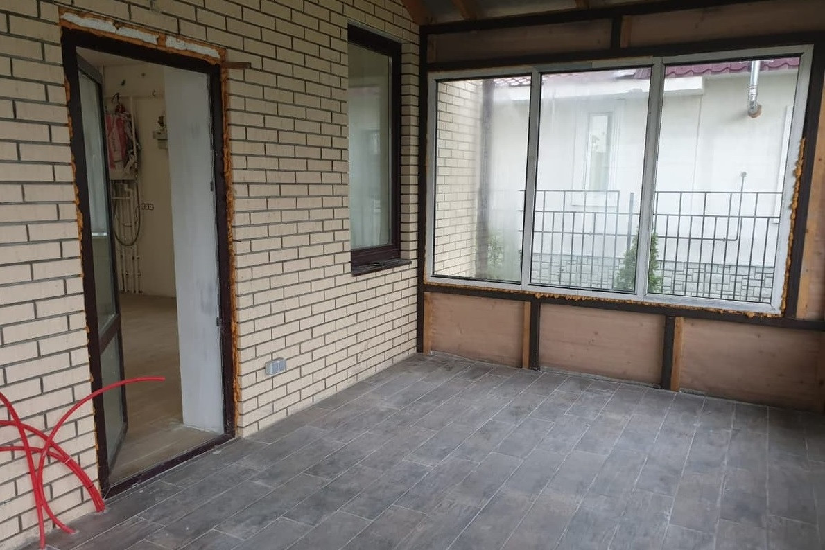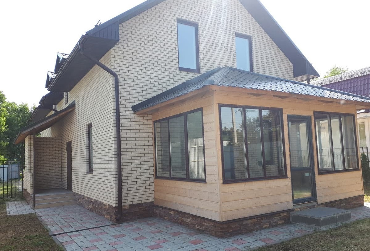 Дом – блок, обложен кирпичом, 1 этаж – кухня -гостиная, с/у, веранда, холл. Теплый пол – первый этаж (весь). 2 этаж – 3 спальни, с\у. дом с отделкой.