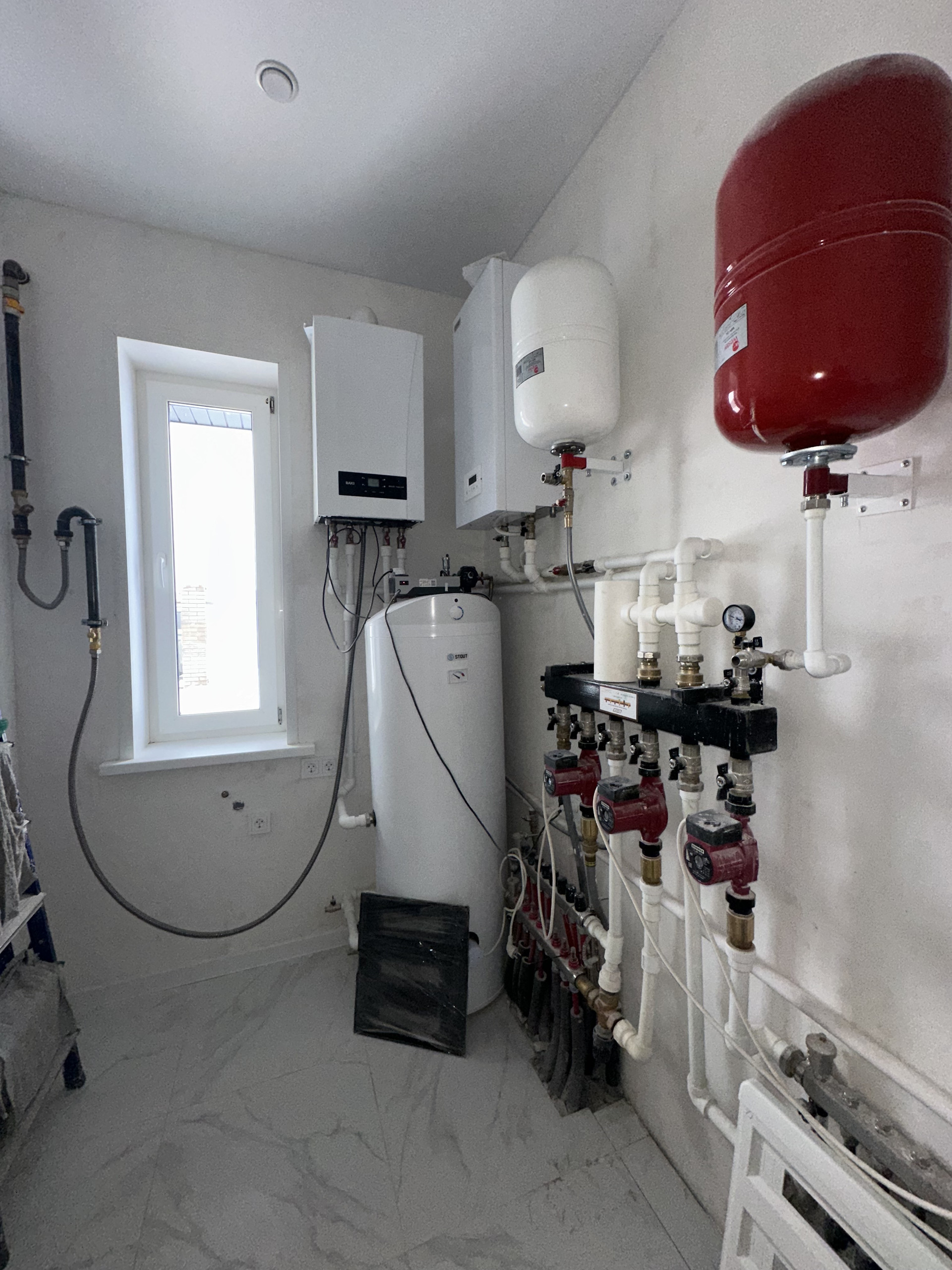 - Газ подключён и разведён, установлен газовый котёл ВАХI, проложены тёплые водяные полы в доме и в бане.
