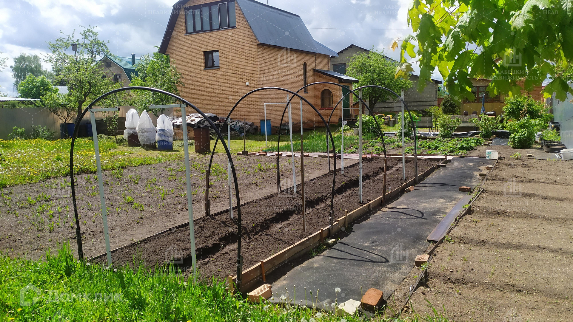 На территории участка есть капитальный кирпичный гараж и(сауна)над гаражом 2 комнаты, хозблок, беседка, два холодных погреба для хранения овощей и зимних заготовок. Вольер для собак, уличный(теплый из кирпича)