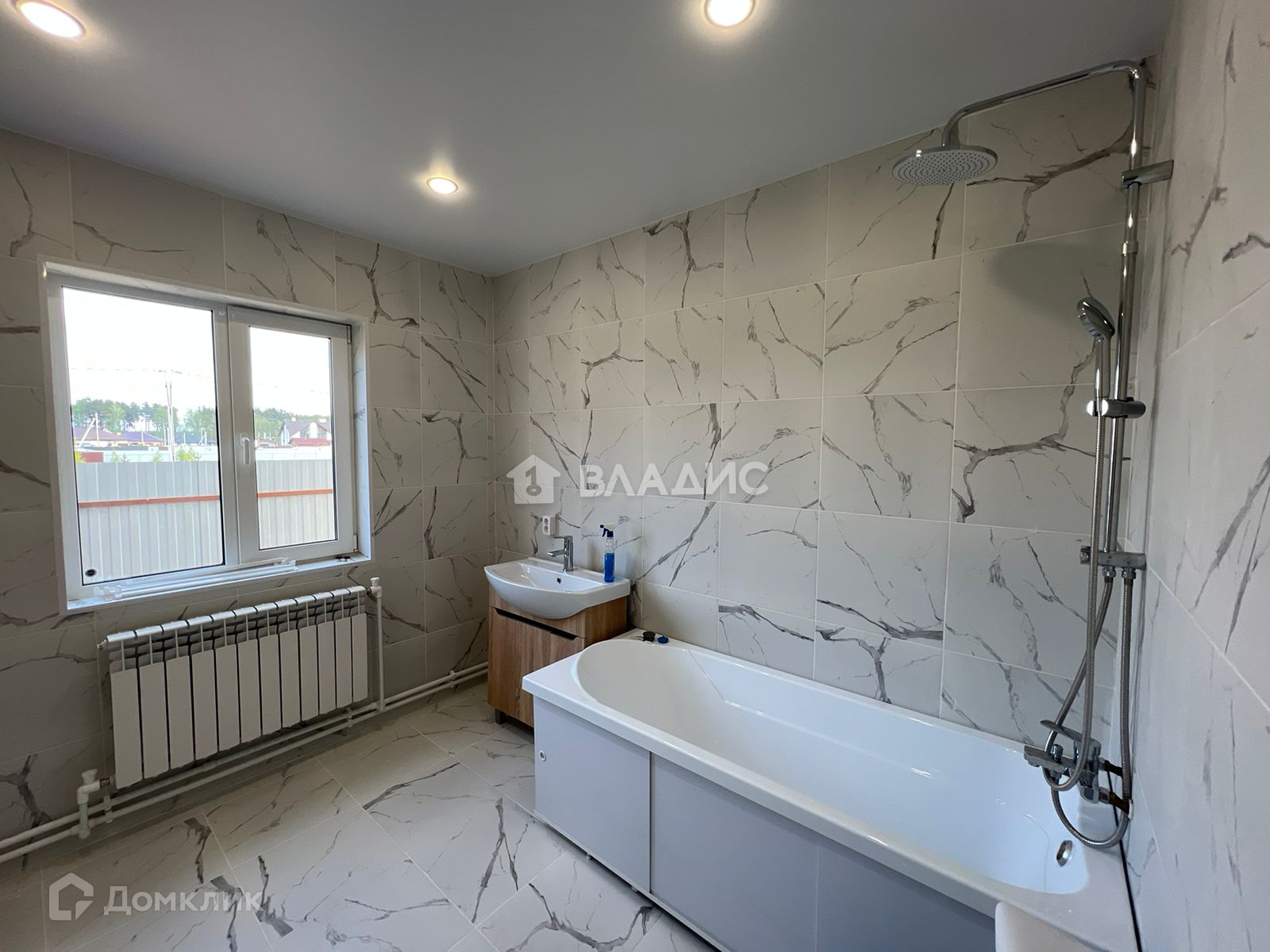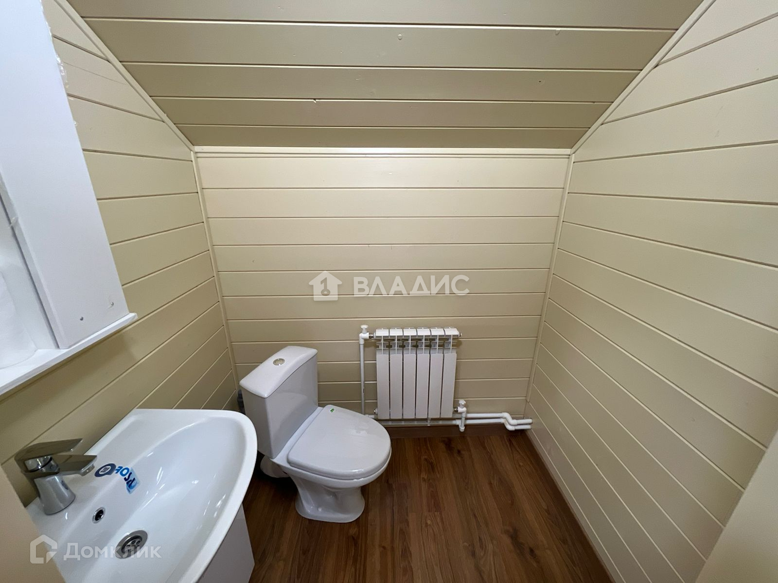 На стенах - имитация бруса . Натяжные потолки с точечными светильниками в ванне и имитация бруса во всем доме .Дом полностью отделан и готов к проживанию. 1 этаж: прихожая, кухня-гостиная, , котельная, санузел, веранда.2 этаж: 3 спальни, санузел.