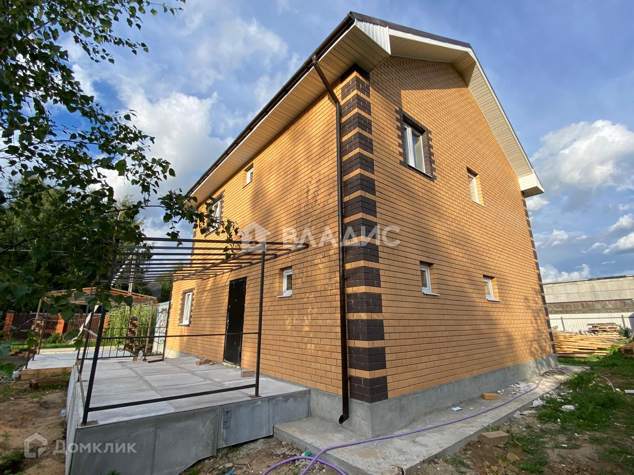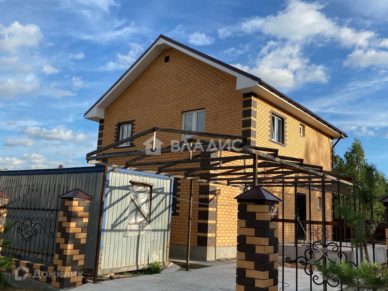 Дом из двух этажей, построен из пеноблоков с облицовкой кирпичом.