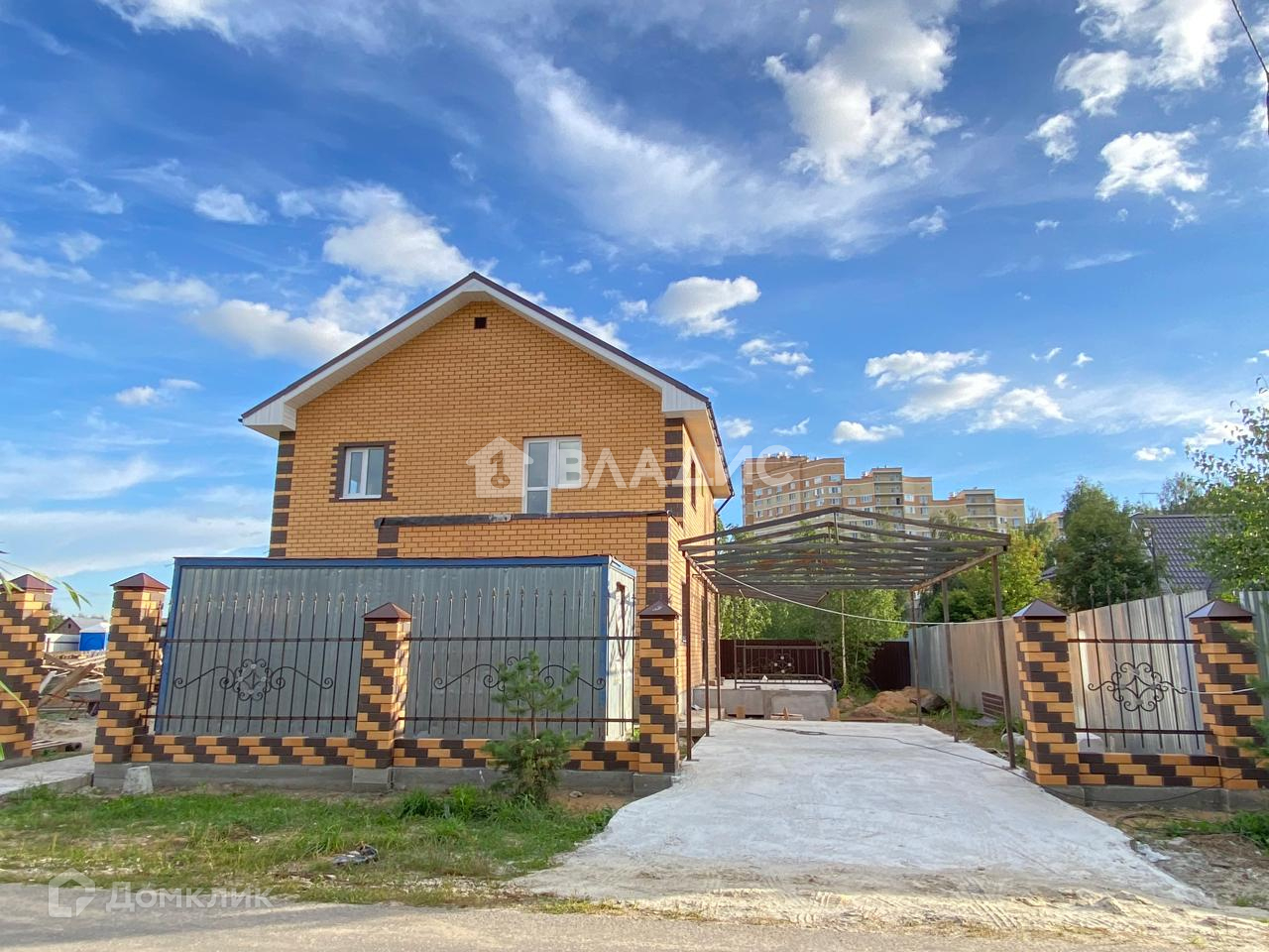 Участок ровный прямоугольной формы, огорожен. Есть автоматические ворота, навес над стоянкой машины.