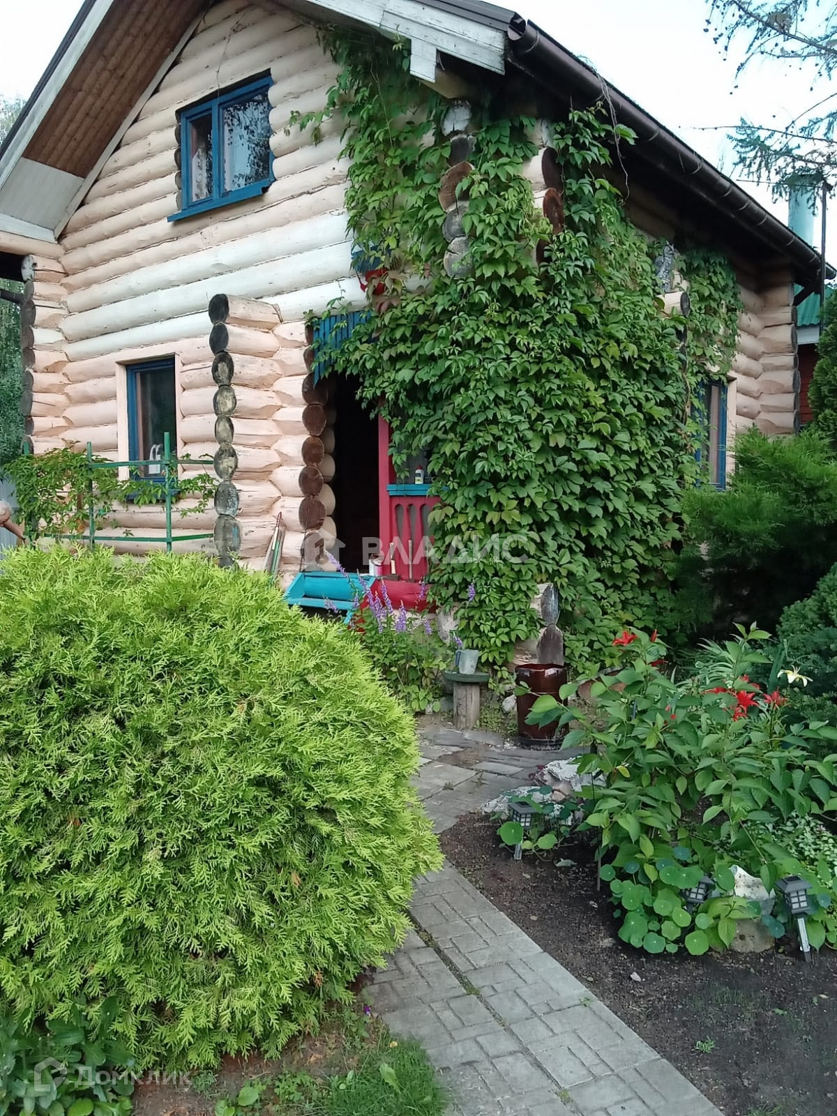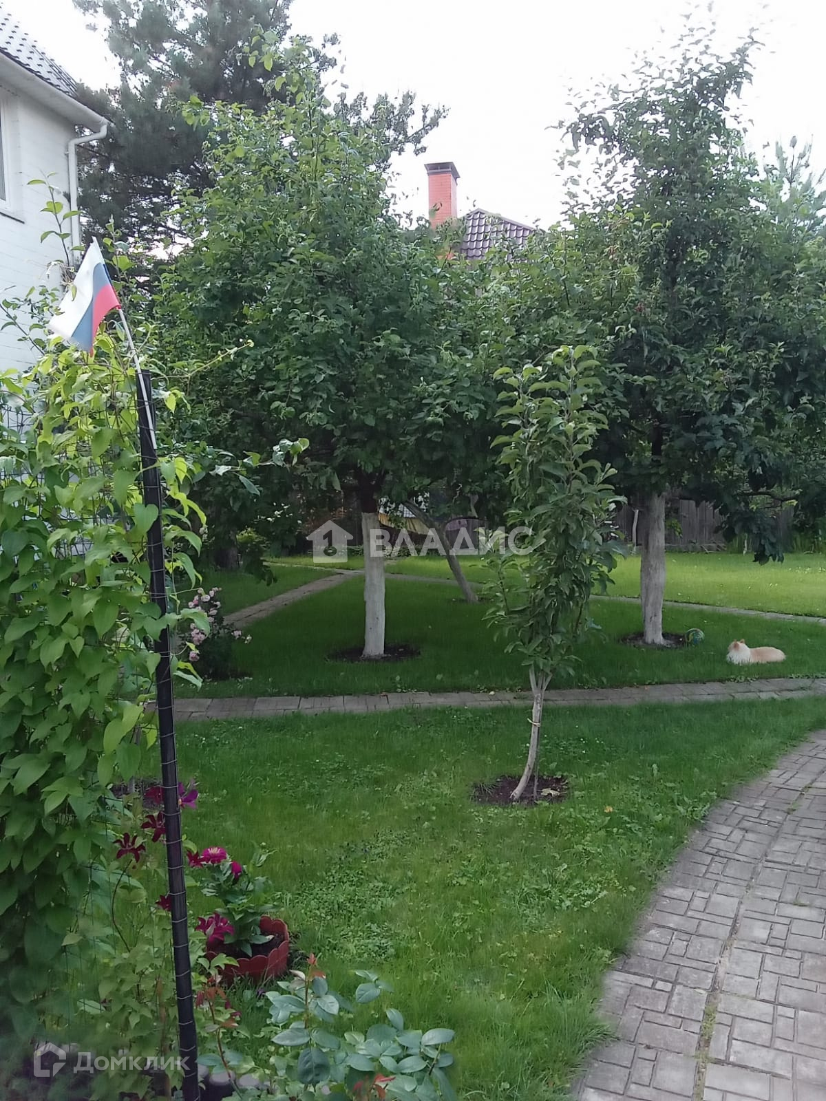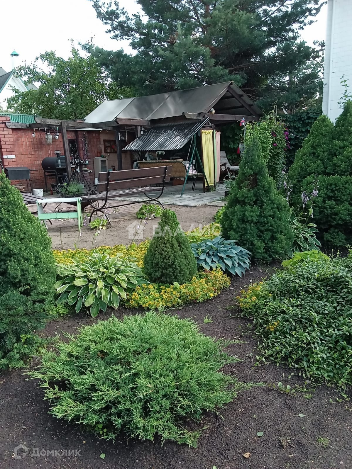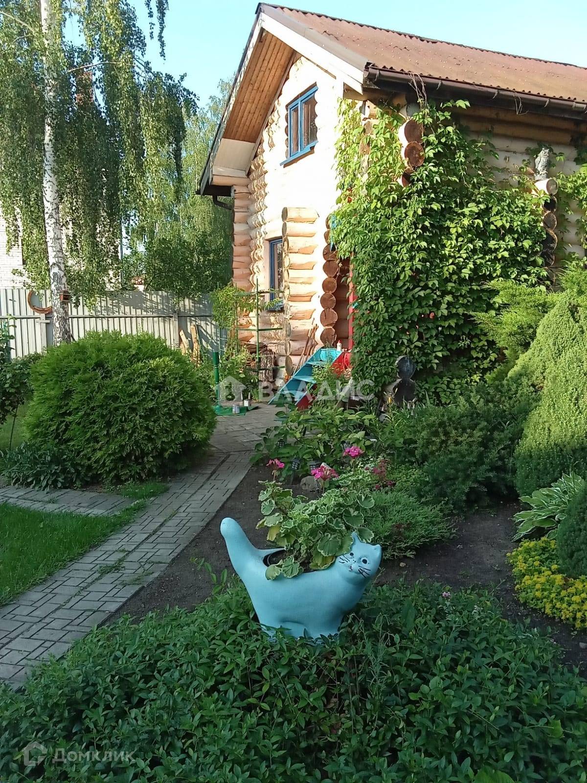 На участке дизайнерски проложены дорожки из натурального камня,
