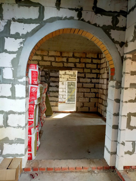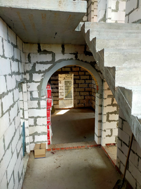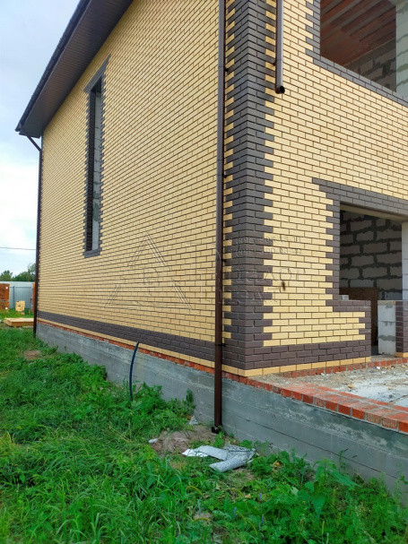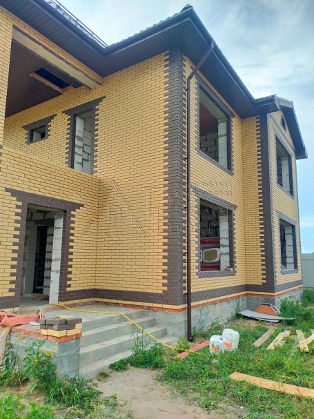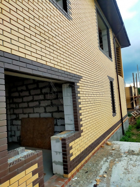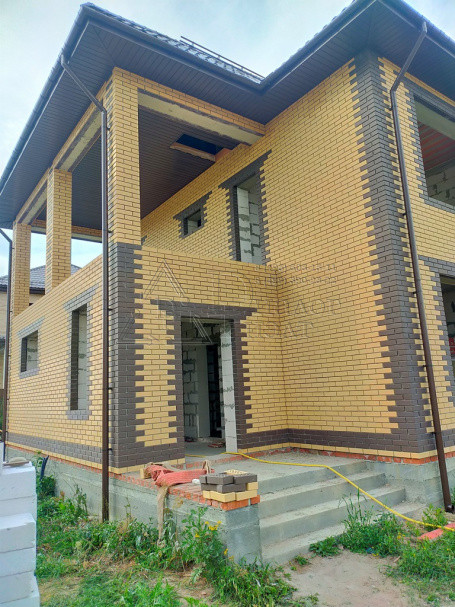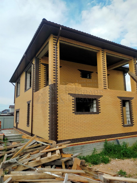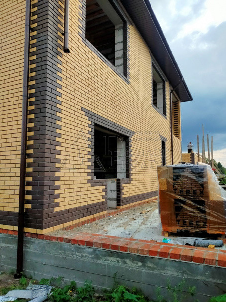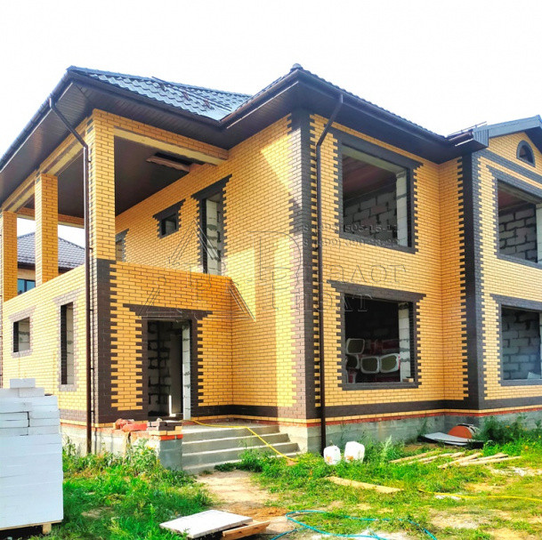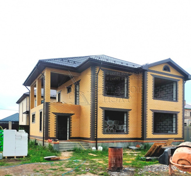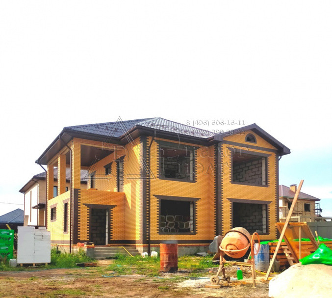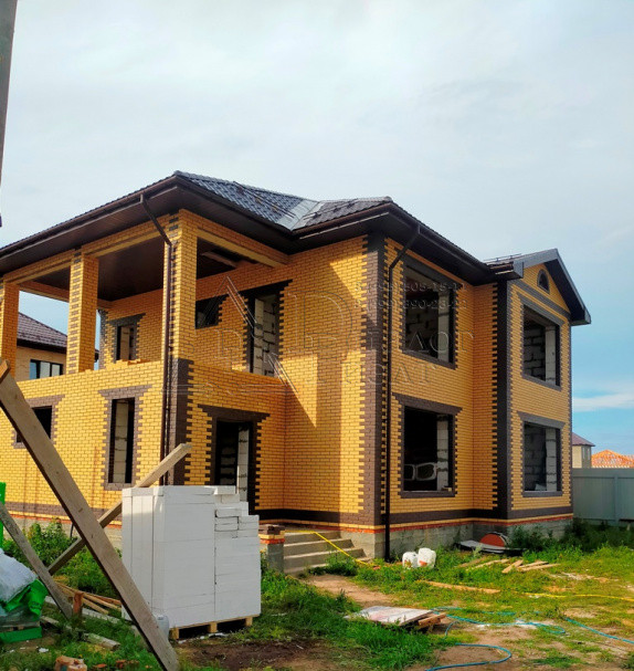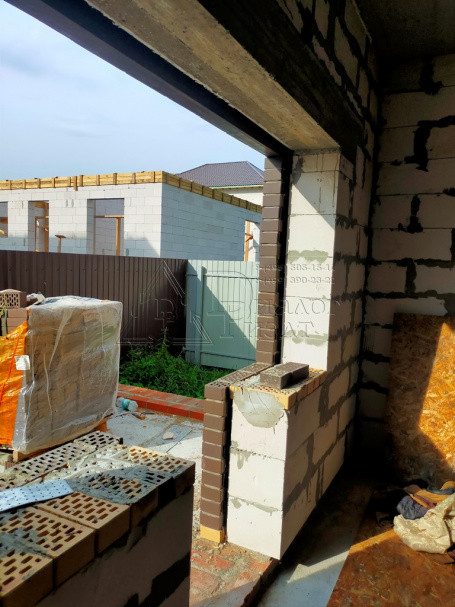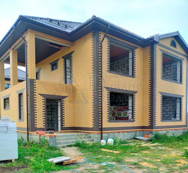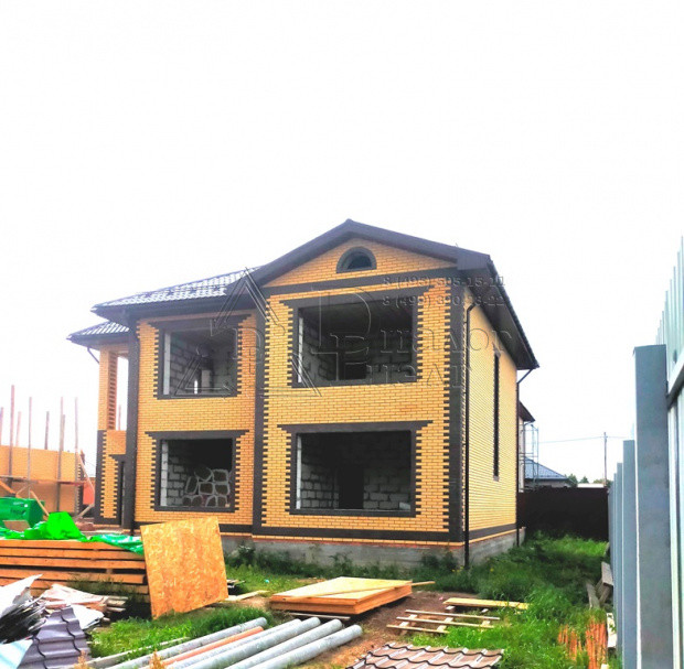 Коттедж построен из газосиликатных блоков, облицован кирпичом. По верху залит армопояс, арматура 12 мм., кровля из металлочерепицы , утепление – 15 см. (три слоя), окна REXAU, перекрытия и лестницы - монолит.