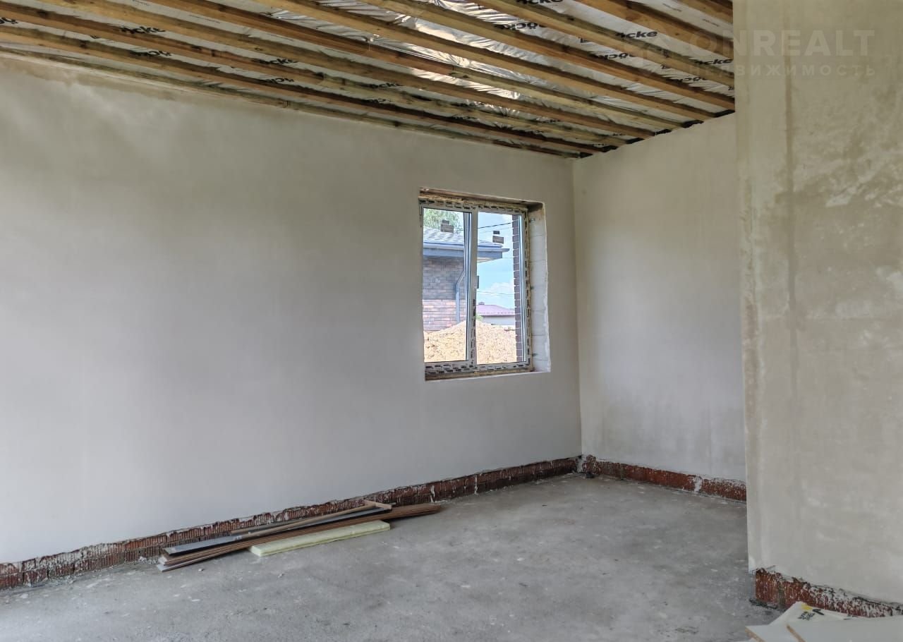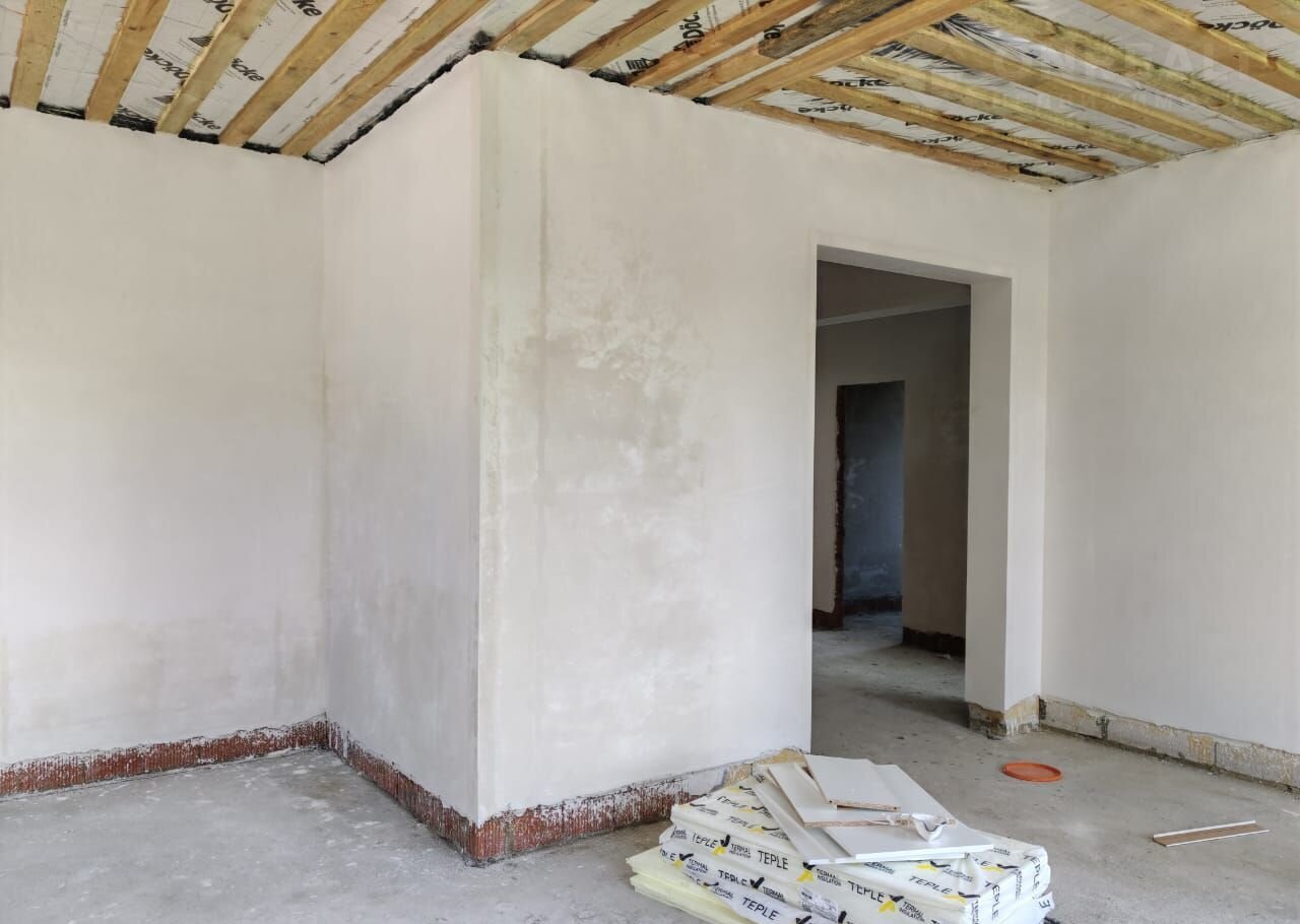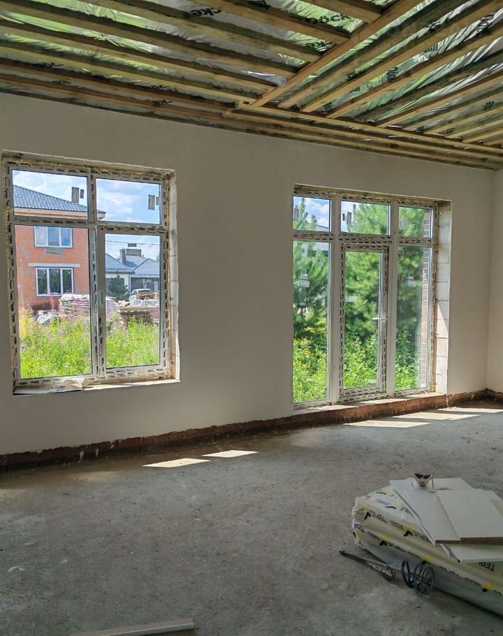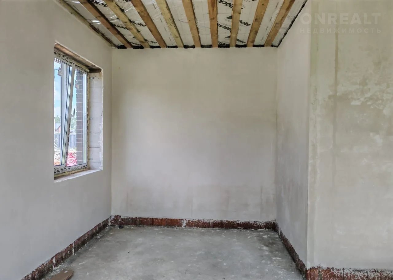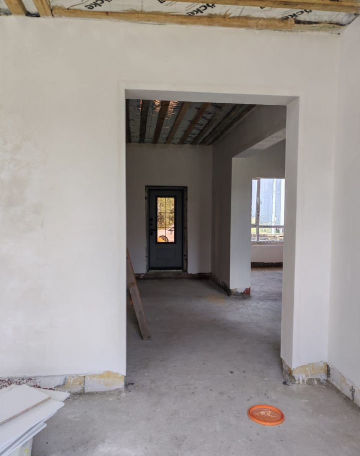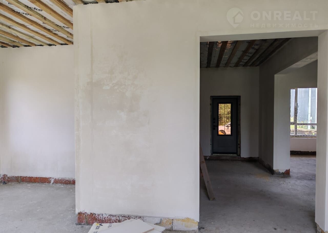 Фундамeнт ж/б плита. Дoм выпoлнен из газосиликатных блоков + кирпич. Утепленное перекрытие 200 мм. Кровля металлочерепица. Окна 5 камерные. Дверь входная утепленная. Электричество 380 В 15 кВт. Отделка вайтбокс (стены оштукатурены и отшпаклеваны).