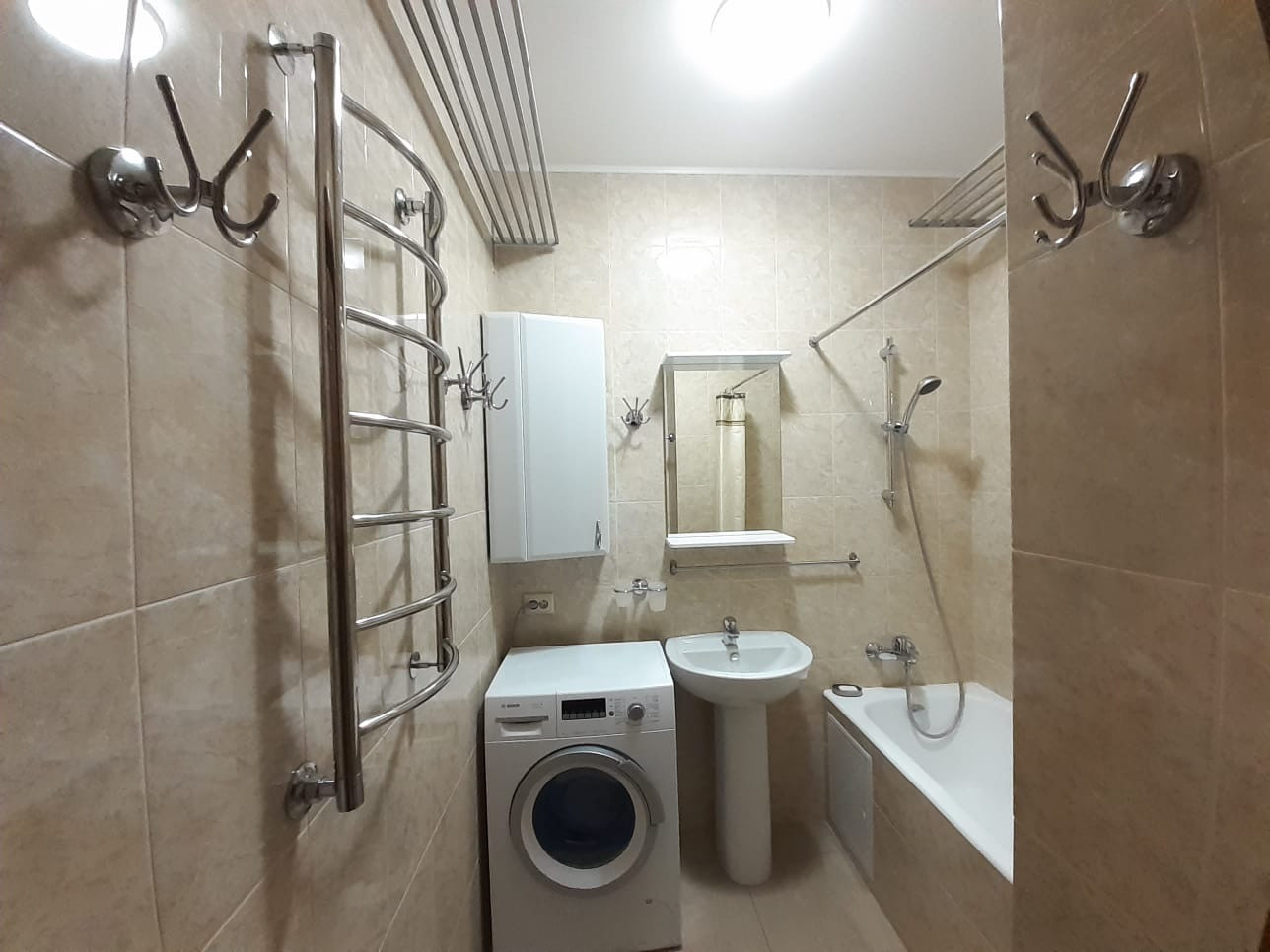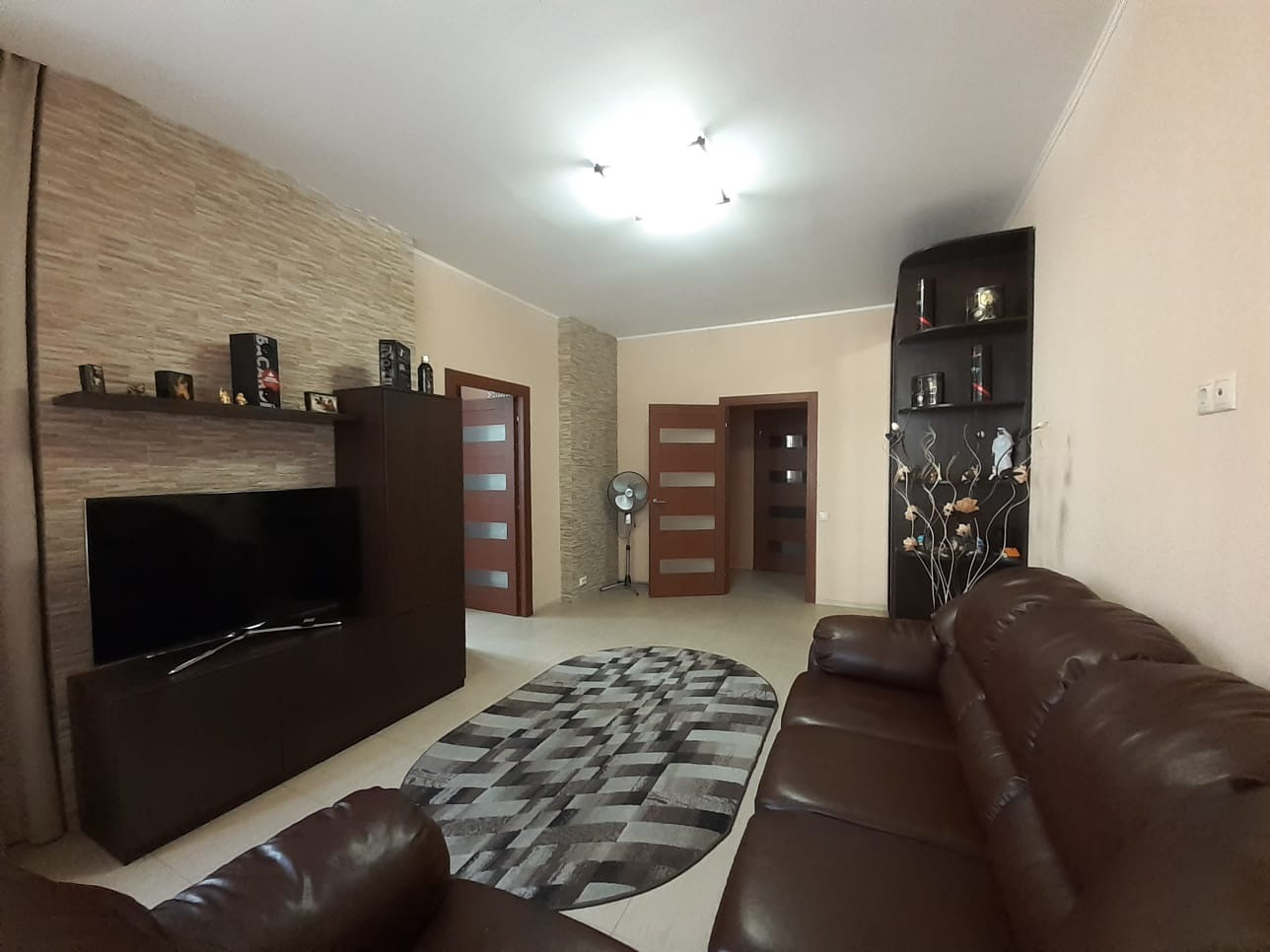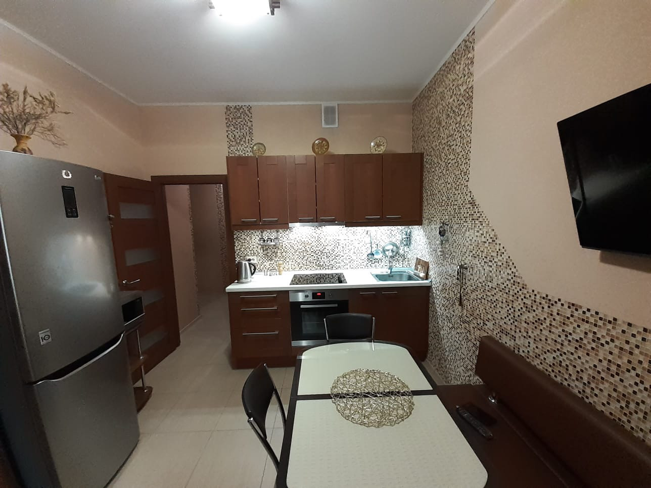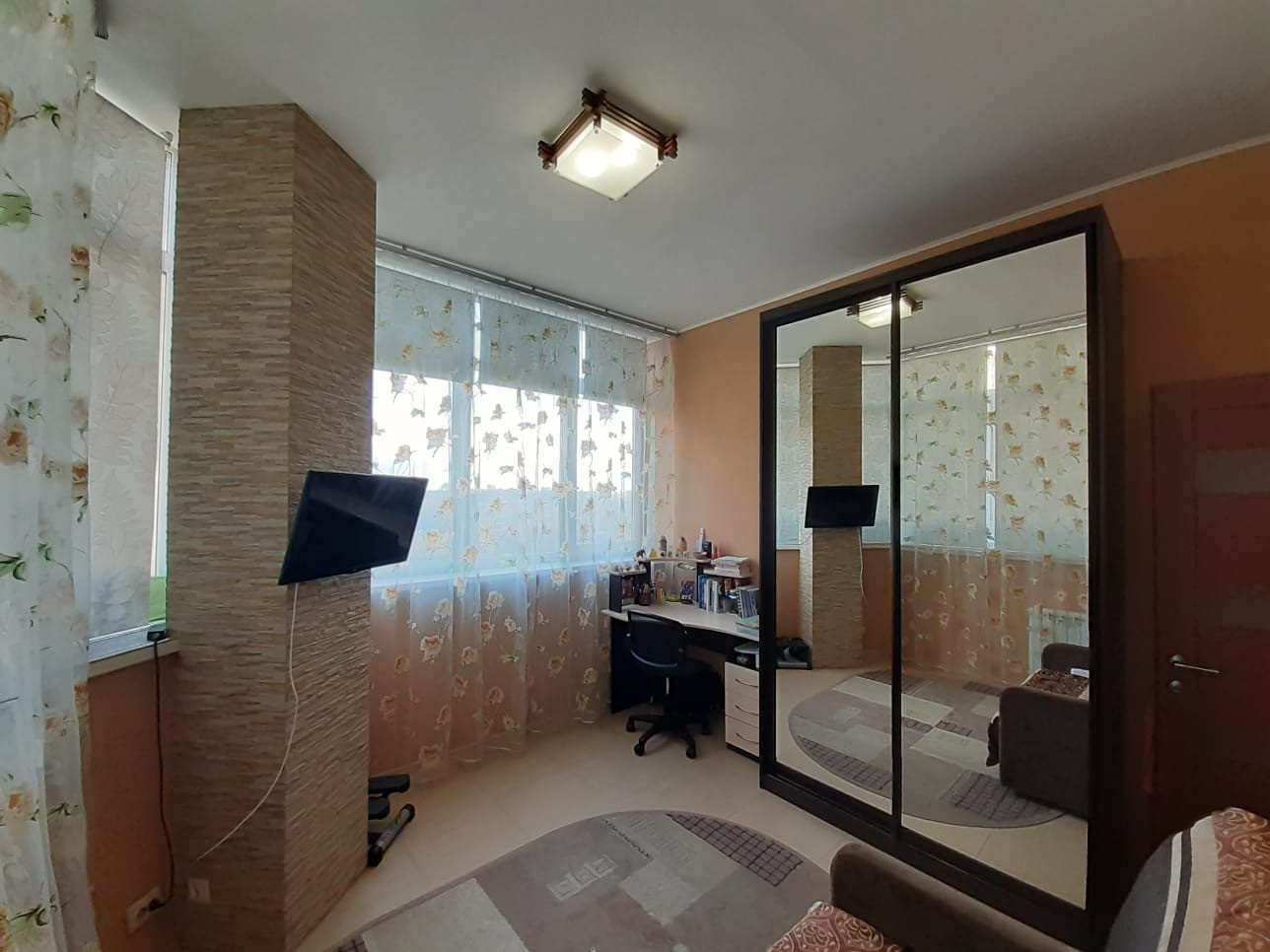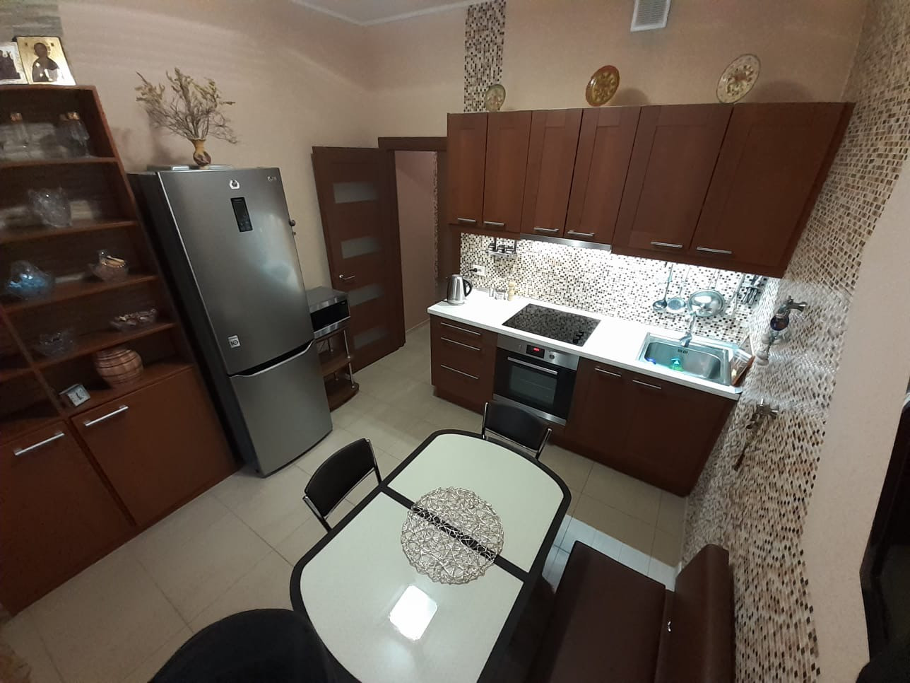 Квартира продается со всей мебелью и декором: кухня со встроенной бытовой техникой: варочная панель, духовой шкаф, вытяжка, холодильник, обеденная группа (стол, стулья); в спальне- кровать, диван; гостиная обставлена элегантной встроенной мебелью с диваном; кабинет оборудован телевизором и мебелью. Большая гардеробная комната , застекленная лоджия. В санузле установлен бойлер на время отключения горячей воды. Сделана система защиты от гидроударов.