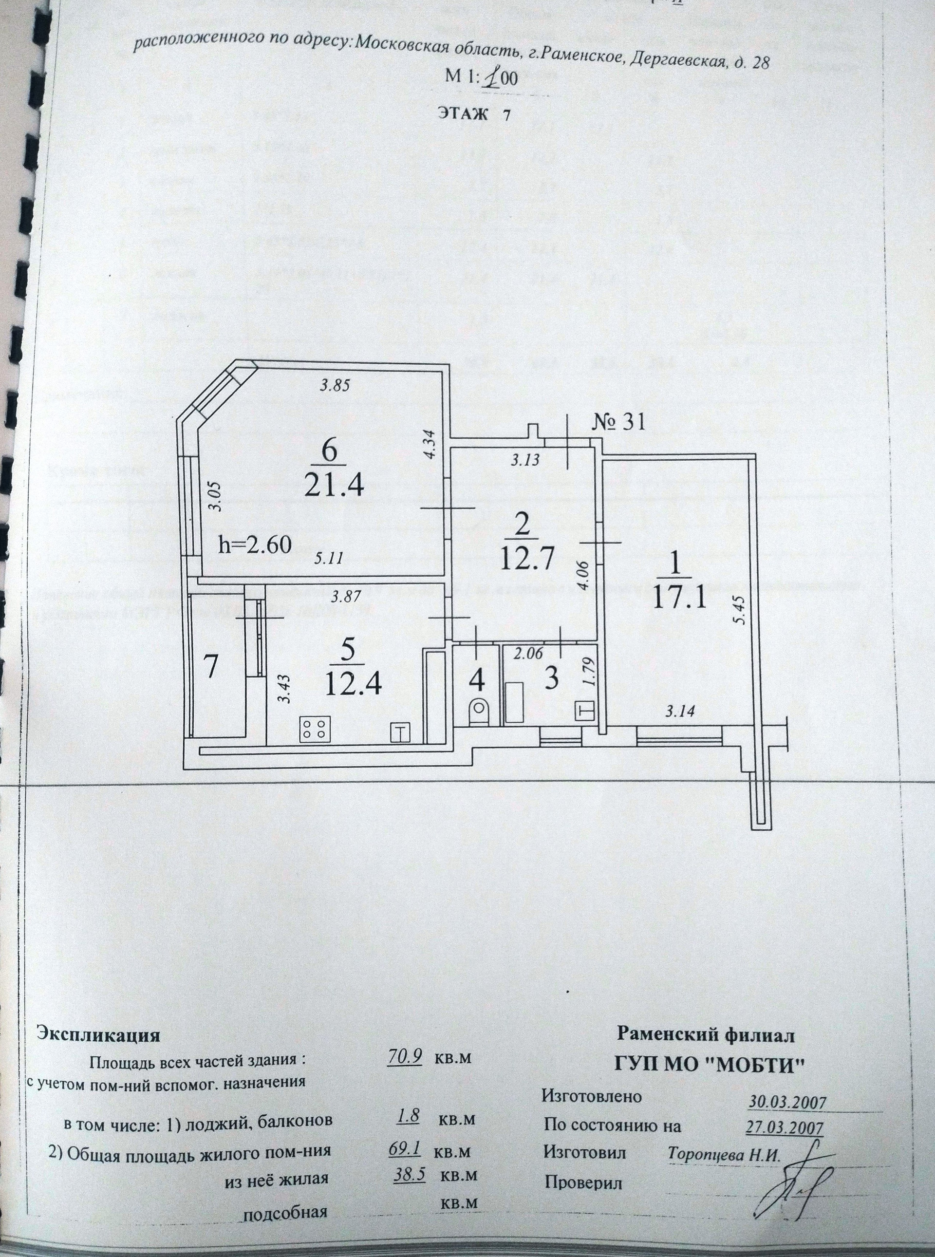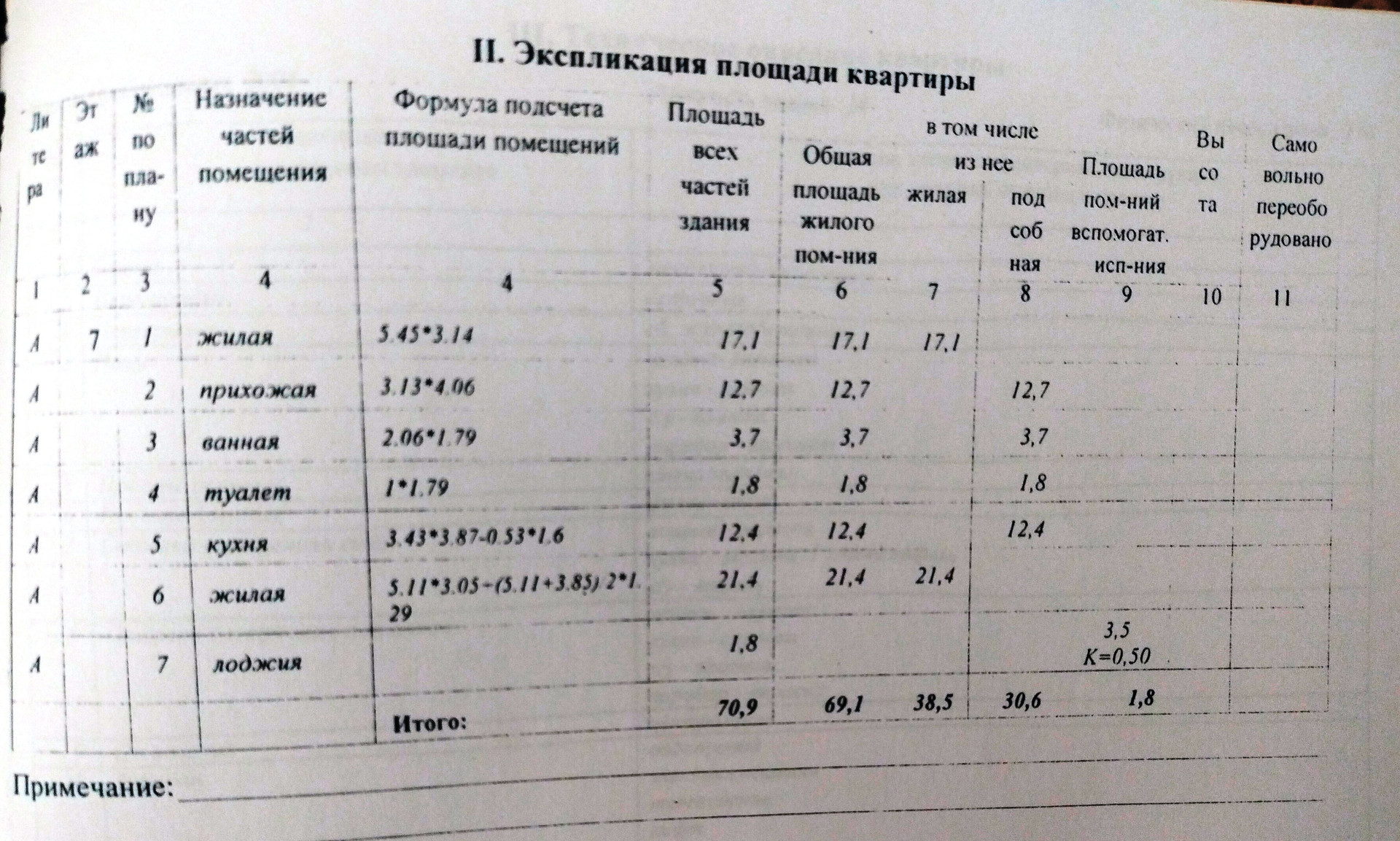 Общая площадь 70.9 м2