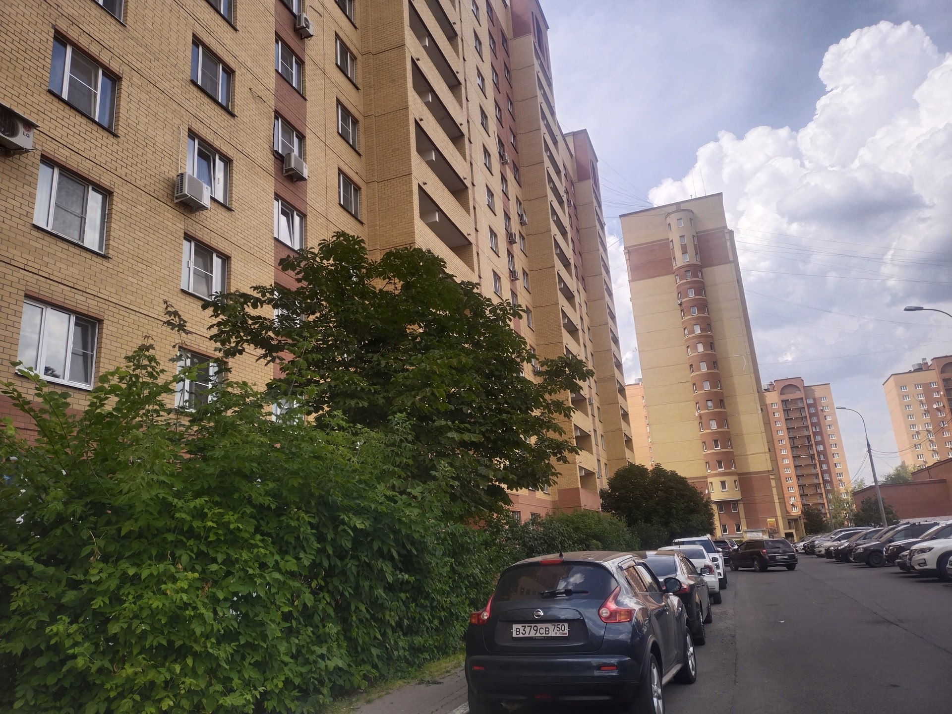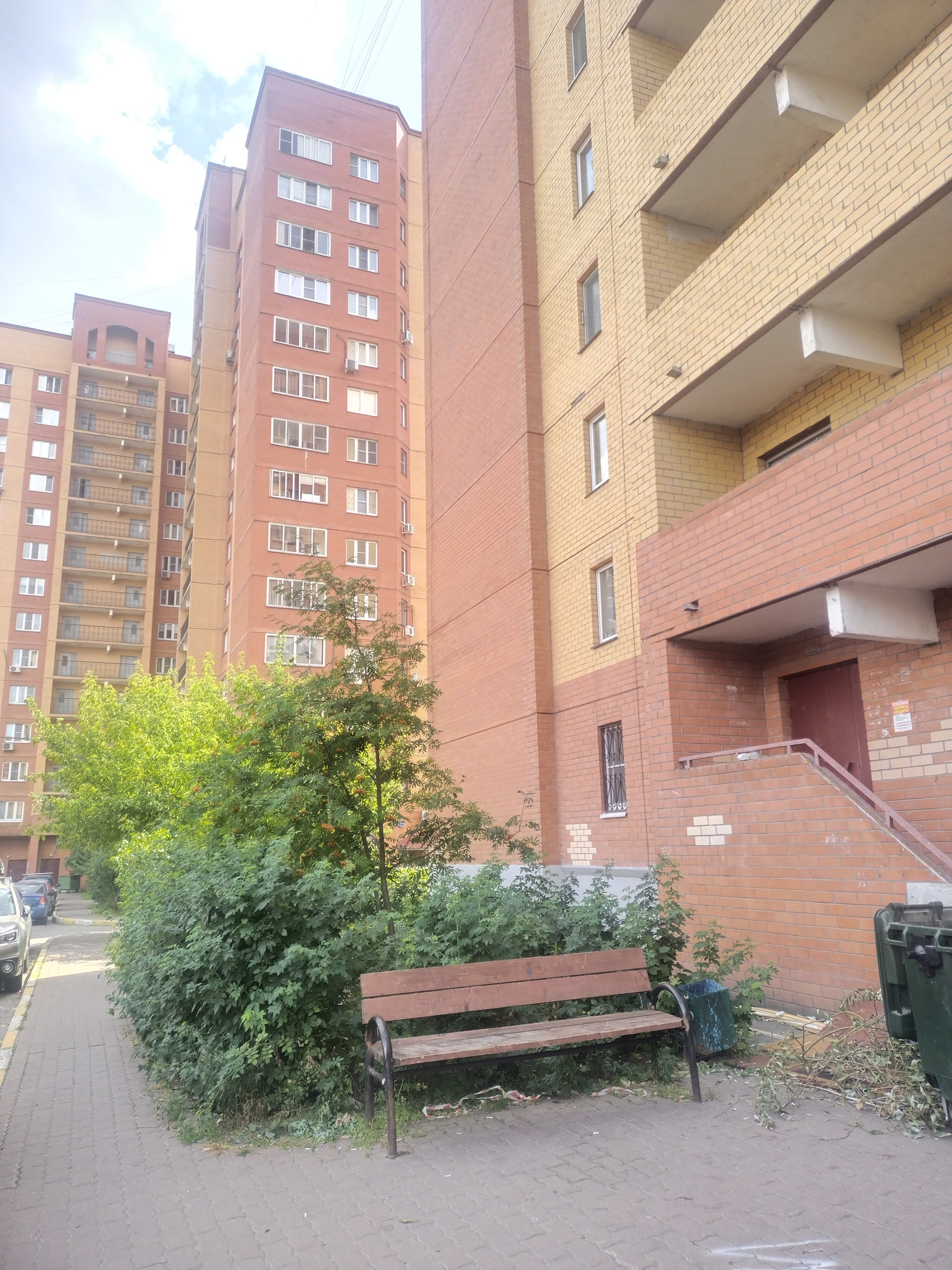 Благоустроенный двор с детскими площадками, зелеными насаждениями, всегда есть парковка для автомобиля.